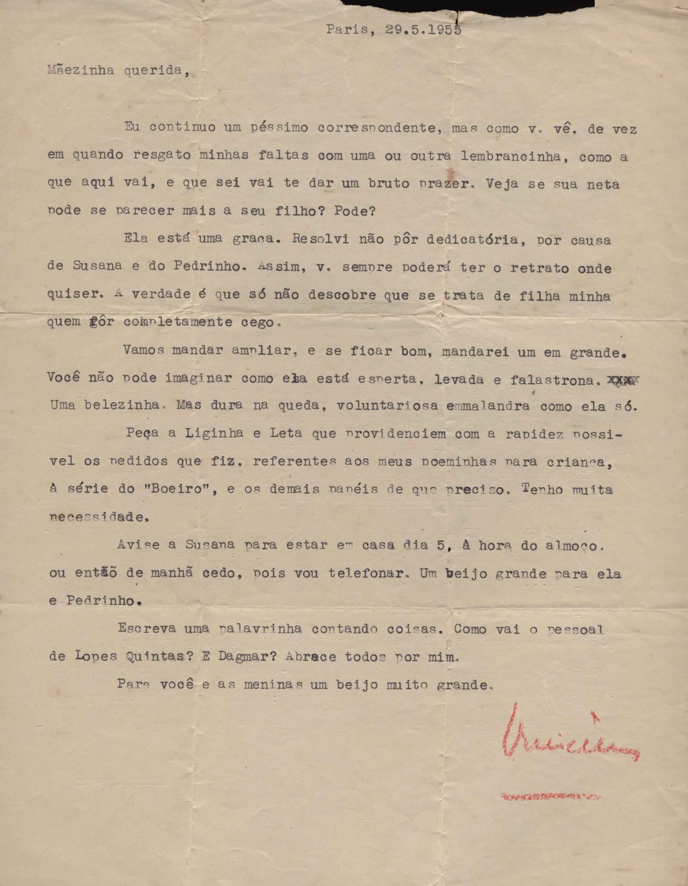 Correspondências entre VM e sua mãe, Lydia Cruz de Moraes. Há cartas sem data e algumas com notas para familiares. Em alguns casos há somente o envelope.