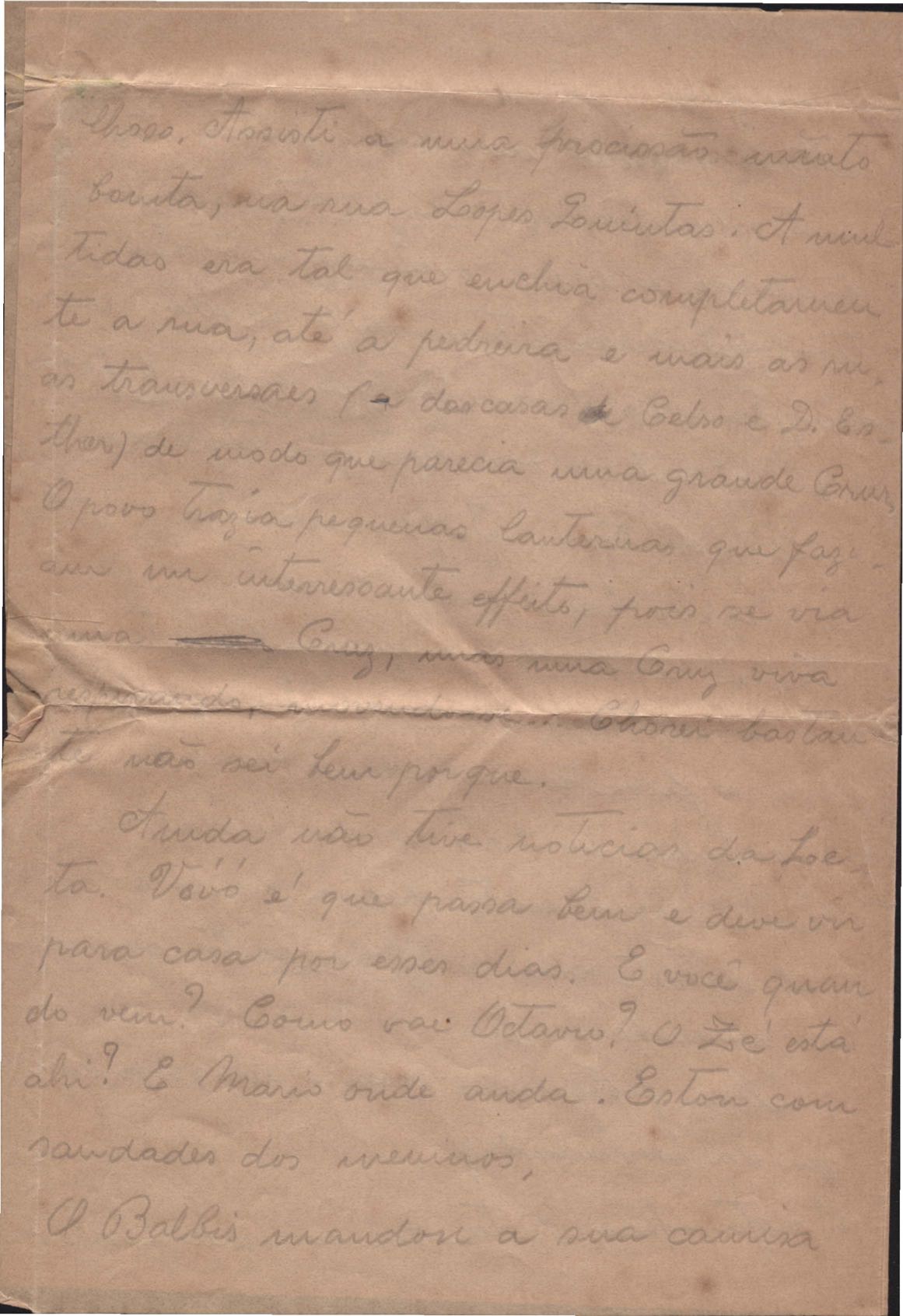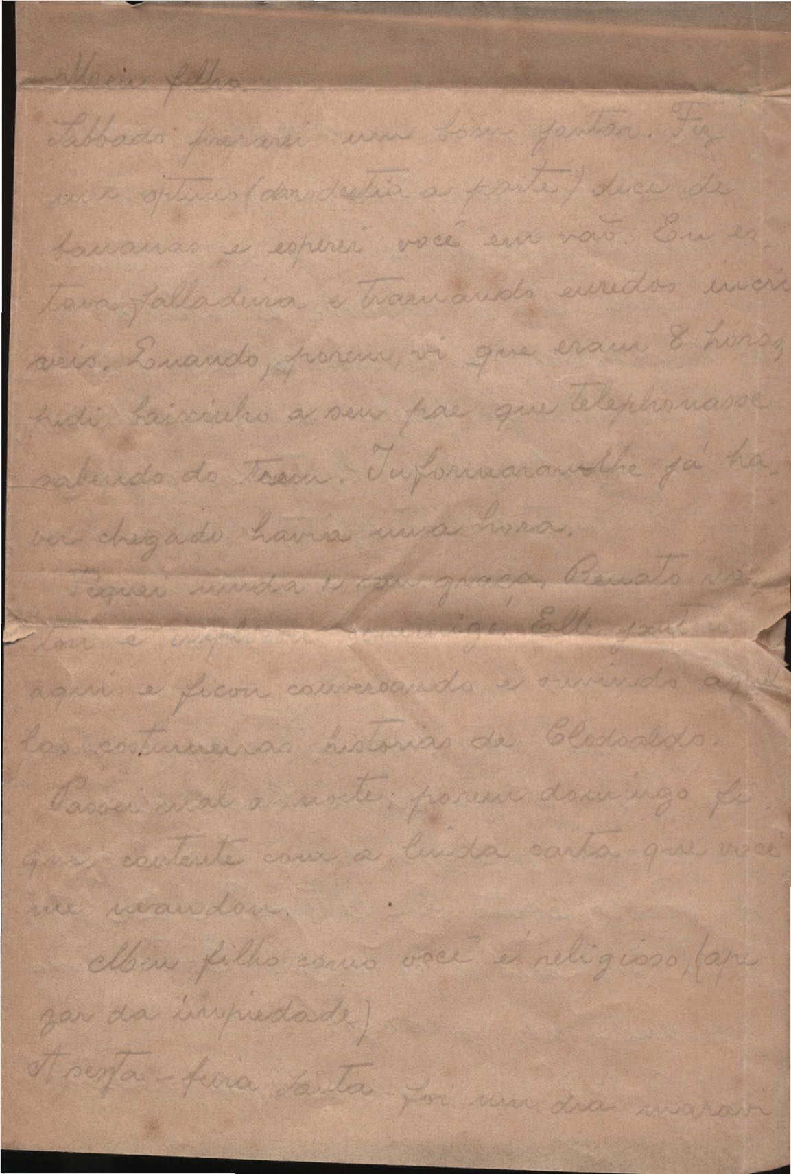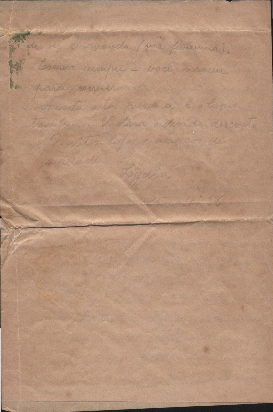Correspondências entre VM e sua mãe, Lydia Cruz de Moraes. Há cartas sem data e algumas com notas para familiares. Em alguns casos há somente o envelope.