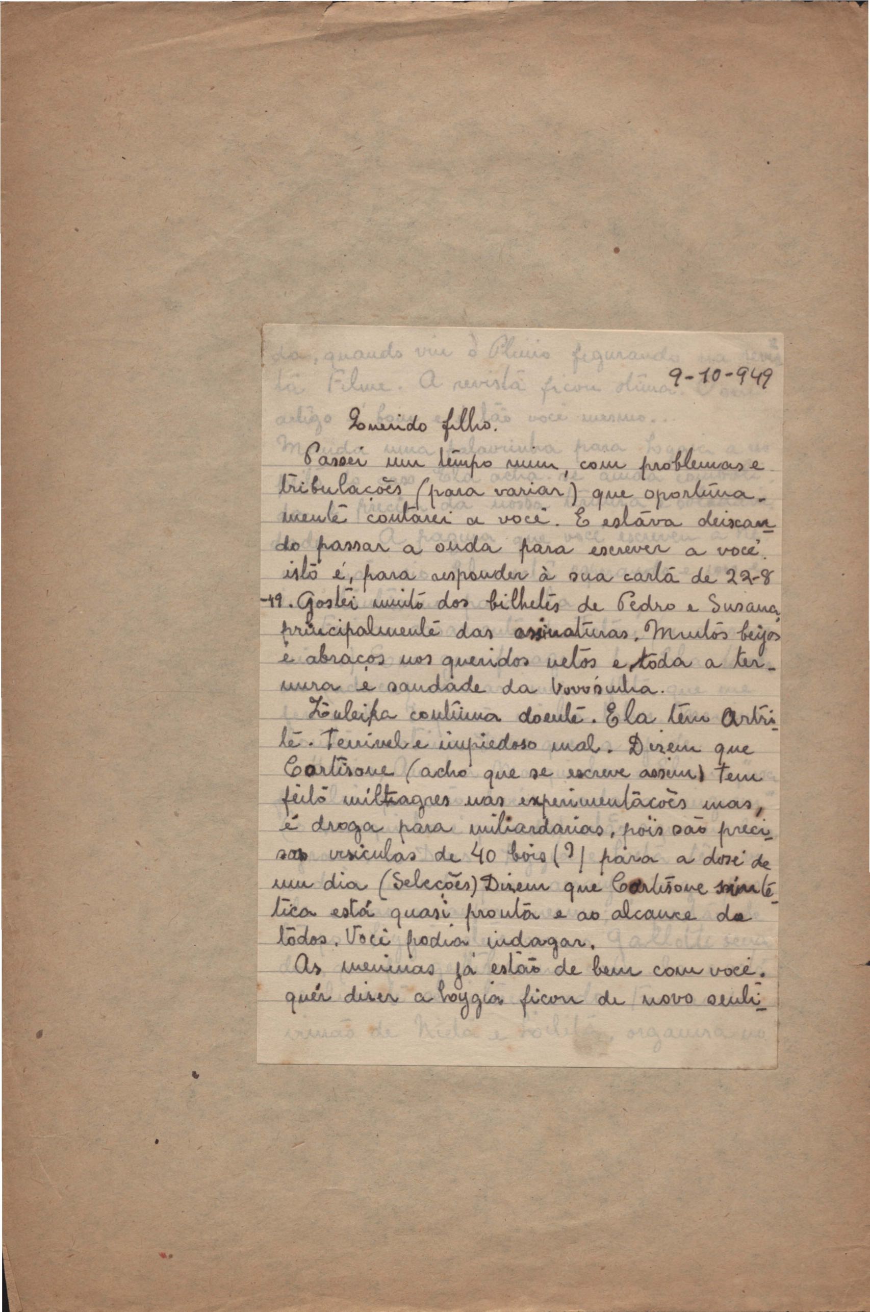 Correspondências entre VM e sua mãe, Lydia Cruz de Moraes. Há cartas sem data e algumas com notas para familiares. Em alguns casos há somente o envelope. [Carta incompleta. Há recado da irmã de VM, Laetitia].