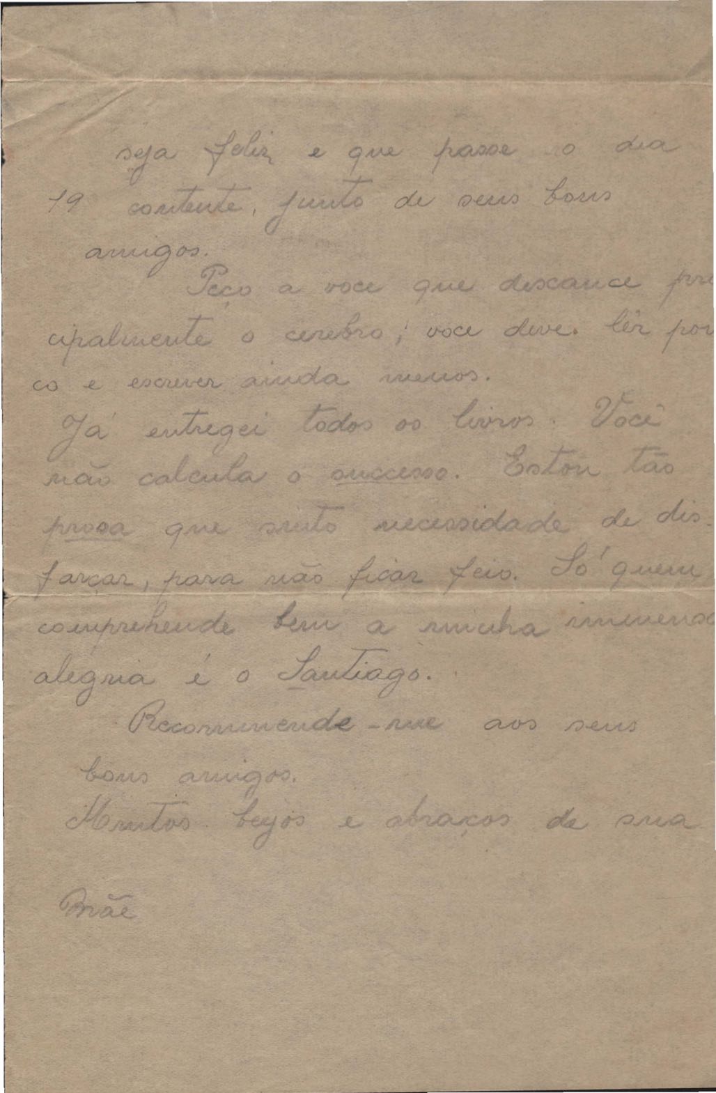 Correspondências entre VM e sua mãe, Lydia Cruz de Moraes. Há cartas sem data e algumas com notas para familiares. Em alguns casos há somente o envelope.