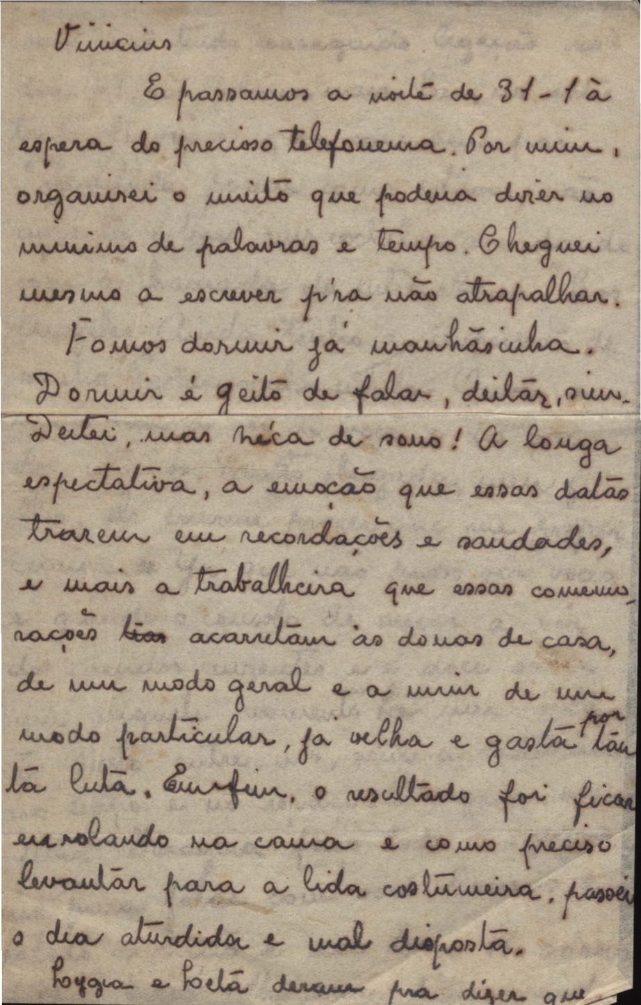 Correspondências entre VM e sua mãe, Lydia Cruz de Moraes. Há cartas sem data e algumas com notas para familiares. Em alguns casos há somente o envelope. [A carta também é assinada por outros familiares].