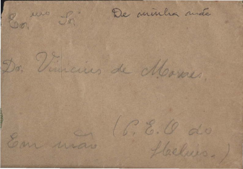 Correspondências entre VM e sua mãe, Lydia Cruz de Moraes. Há cartas sem data e algumas com notas para familiares. Em alguns casos há somente o envelope.