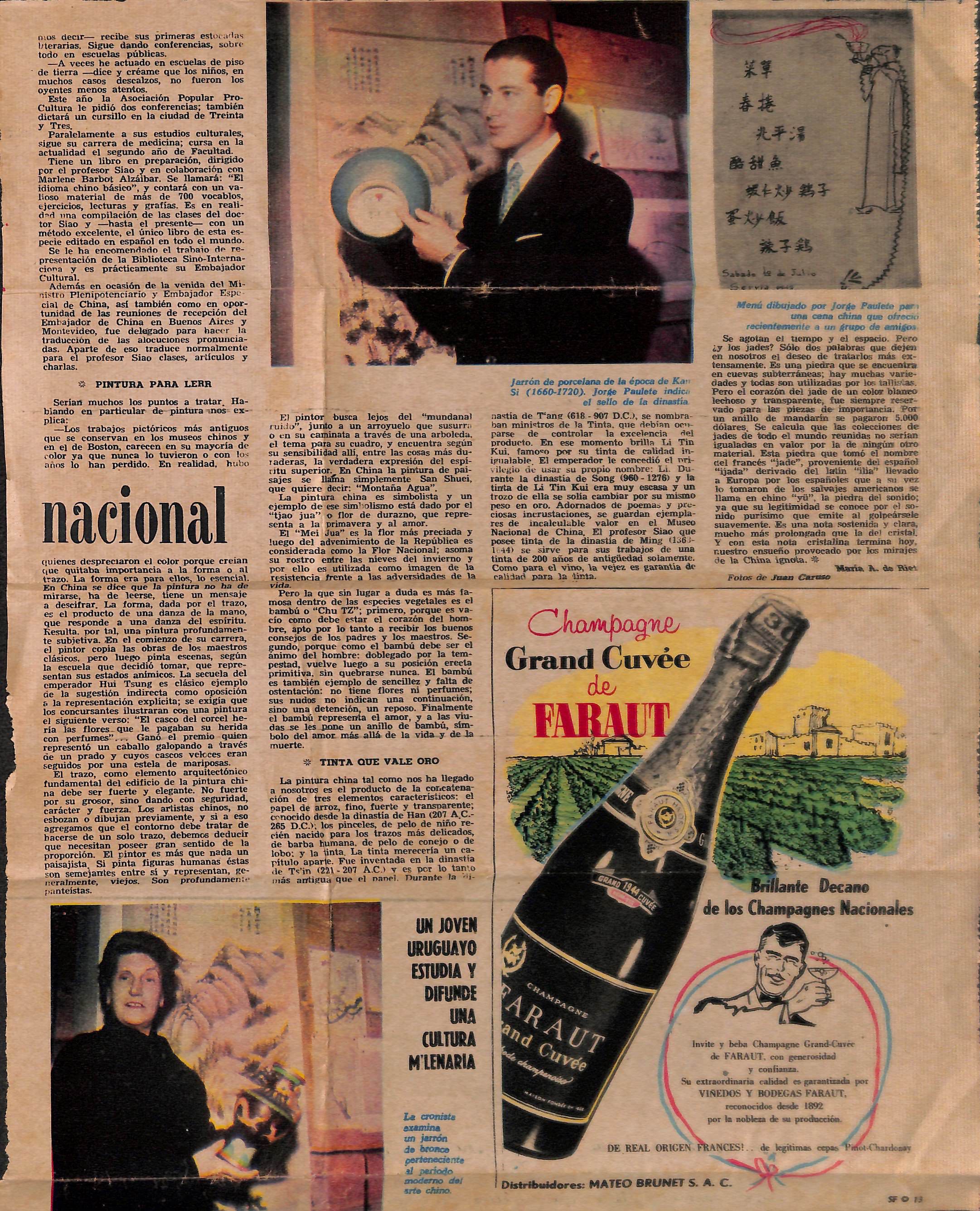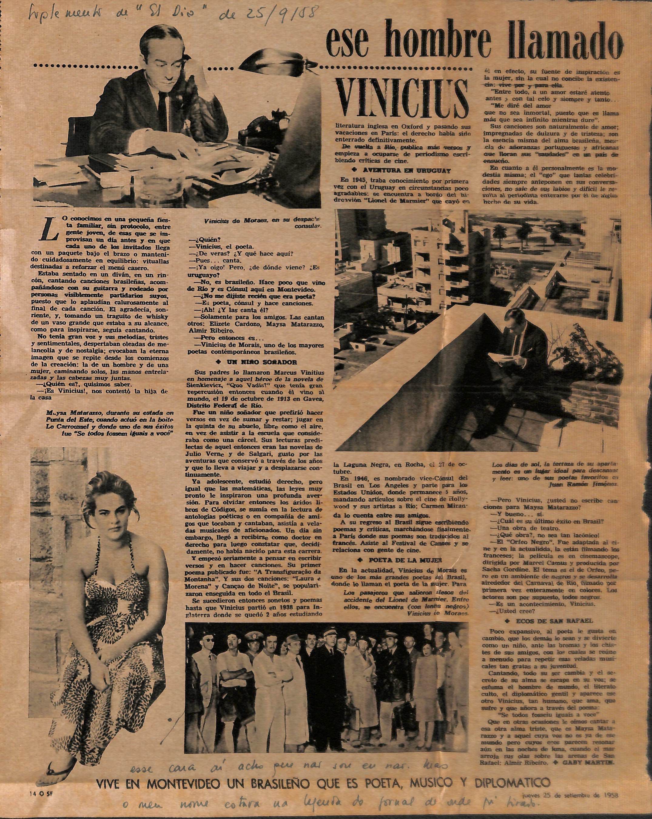 Recorte do Suplemento de El Día – "Ese hombre llamado Vinicius" de 25 set. 1958, anexo da carta de Montevidéu, 29 set. 1958.