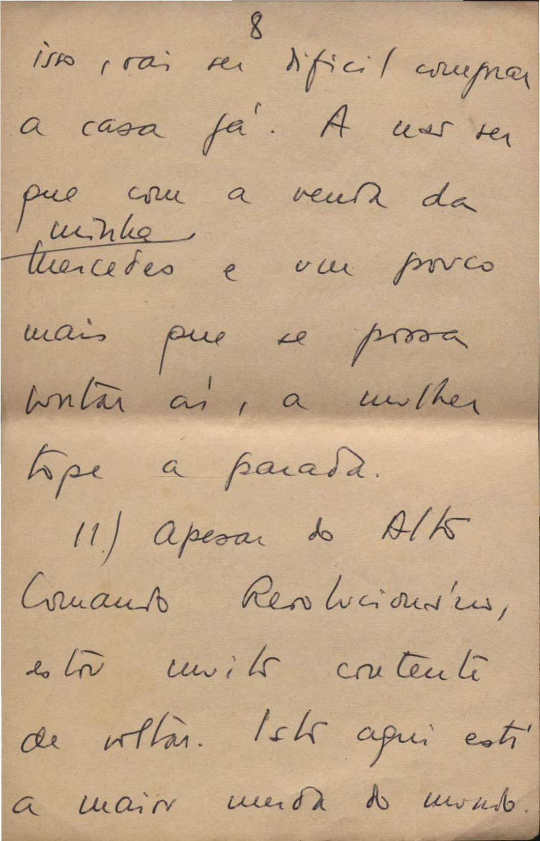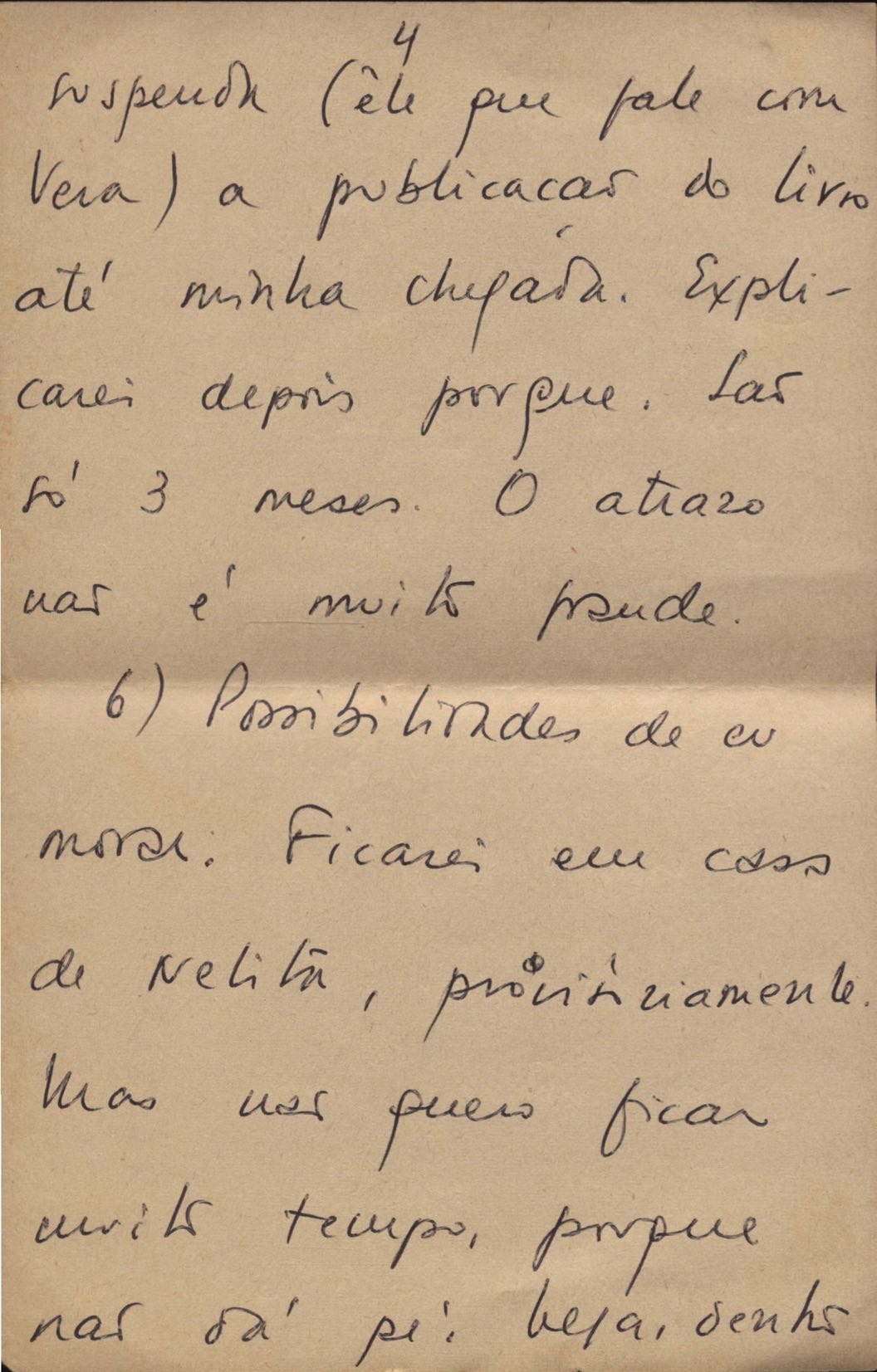 Notícias sobre a vida familiar. Relatório da administração do dinheiro recebido por músicas e livros de VM. Notícias sobre a publicação de crônicas. Comentário sobre o recebimento de direitos autorais e de remuneração do Itamaraty a VM, no exercício de 1963. Notícias sobre o falecimento do escritor Aníbal Machado. Referência aos amigos Afonso Arinos, Agripino Grieco, Celso Souza e Silva, David Mourão Ferreira, Gessy Gesse, João Ribeiro, Manuel Bandeira, Mário Cabral, Nelson Rodrigues, Oscar Niemeyer, Paulo Carneiro, Peregrino Júnior e Peter Keller. Notícias sobre a vida pessoal e familiar. Comentário sobre negócios feitos. Intenção de (gravar) um disco/LP com seus poemas infantis. Referência à organização de seu arquivo pessoal, por sua irmã, Lygia Cruz de Moraes. Publicação de sua obra completa. Consideração a respeito do Festival de Cinema de Cannes. Envio, em anexo, de reportagem sobre VM no exterior. Autorização para sua irmã receber e administrar os recursos provenientes de sua pensão e de seus direitos autorais. Notícias de futuro retorno ao Brasil. Proibição de Pixinguinha para vender sua obra em parceria com VM. Referência a pessoas de sua amizade: Adolfo Bloch, Aníbal Machado, Antônio Bittencourt, Antônio Calado, Antônio Carlos Jobim, Carlos Lacerda, Carlos Ribeiro, Fernando Lobo, Fernando Sabino, Lima Duarte, Lúcia Magalhães, Lúcio Rangel, Mário Cabral, Nora Nei, Otávio Tirso, Pablo Neruda, Paulo Mendes Campos, Pedro Galloti, Waldemar Leite de Oliveira entre outros.