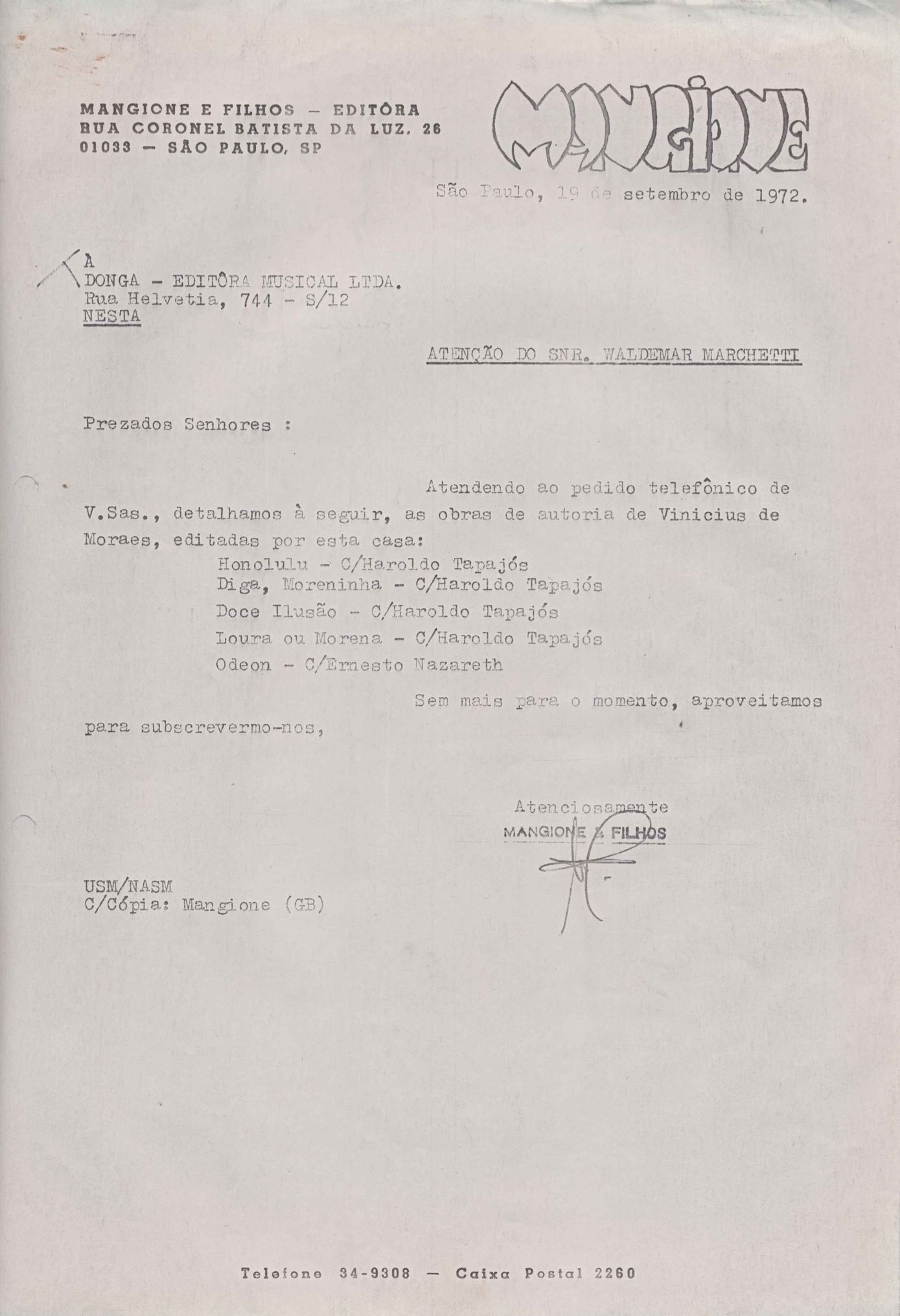 Carta à Tonga Editora Musical