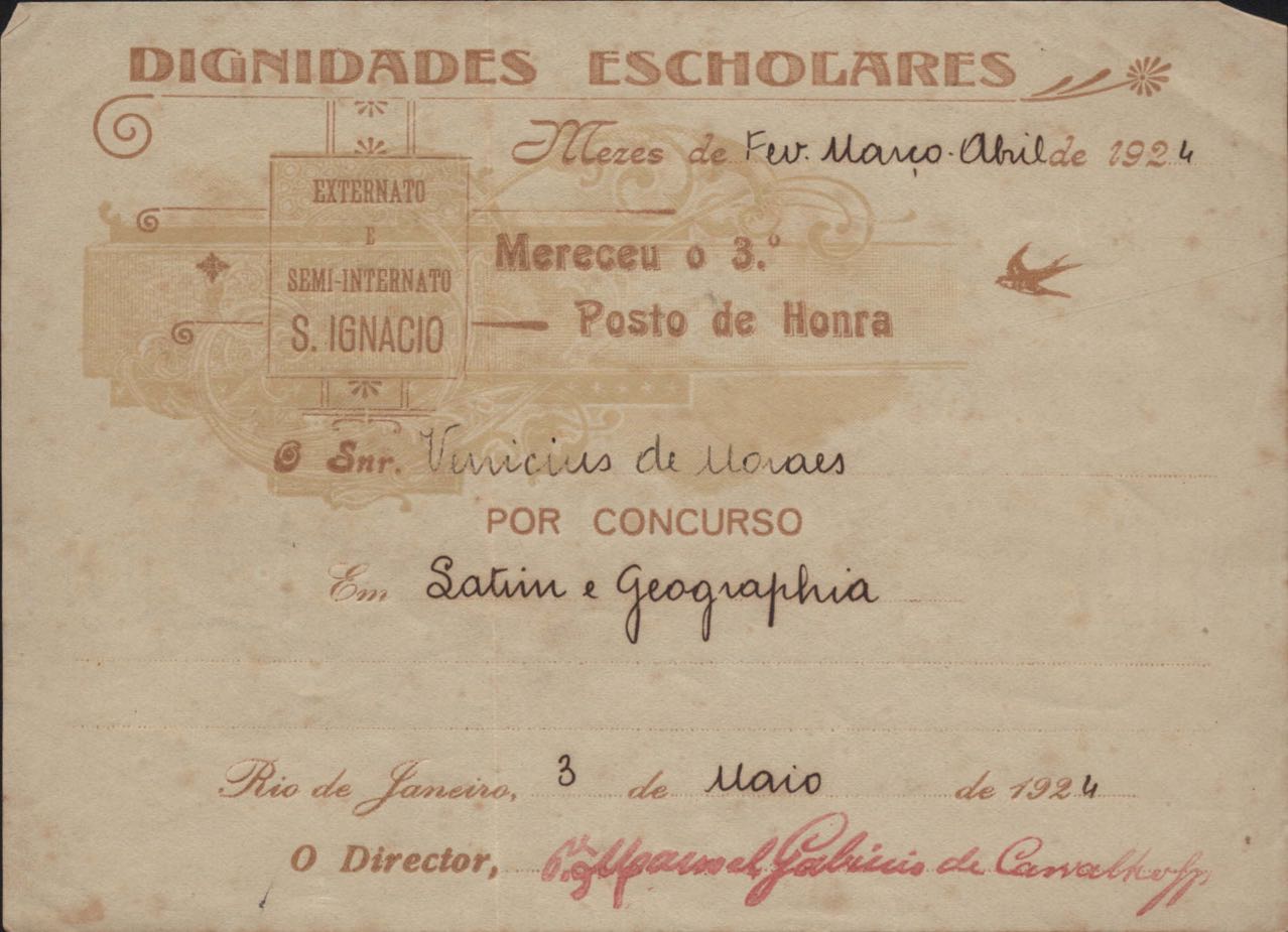 Certificado do Colégio Santo Inácio.