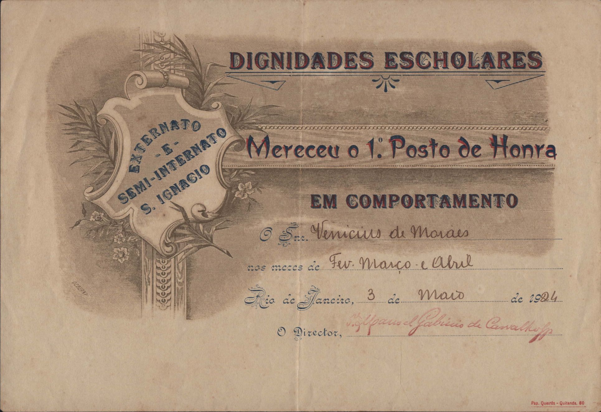 Certificado do Colégio Santo Inácio.