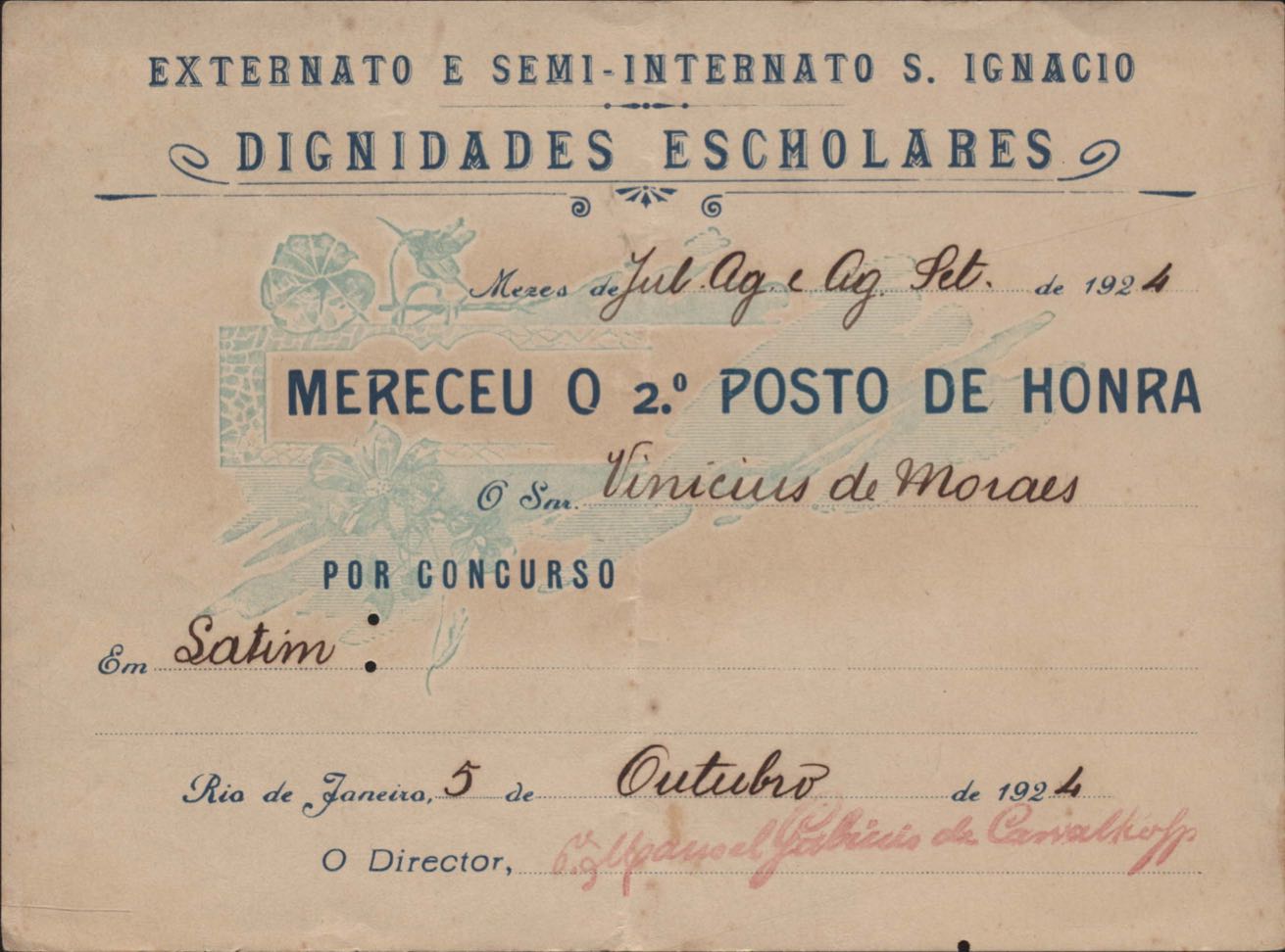 Certificado do Colégio Santo Inácio.