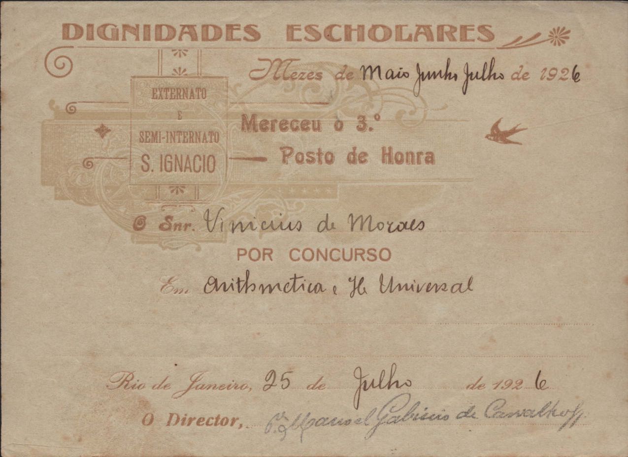 Certificado do Colégio Santo Inácio.