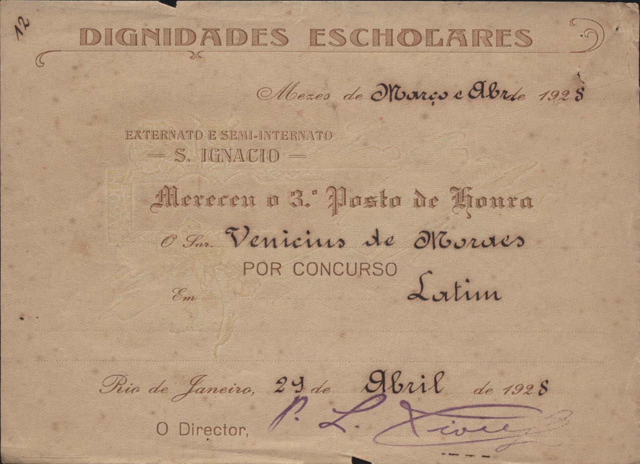 Certificado do Colégio Santo Inácio.