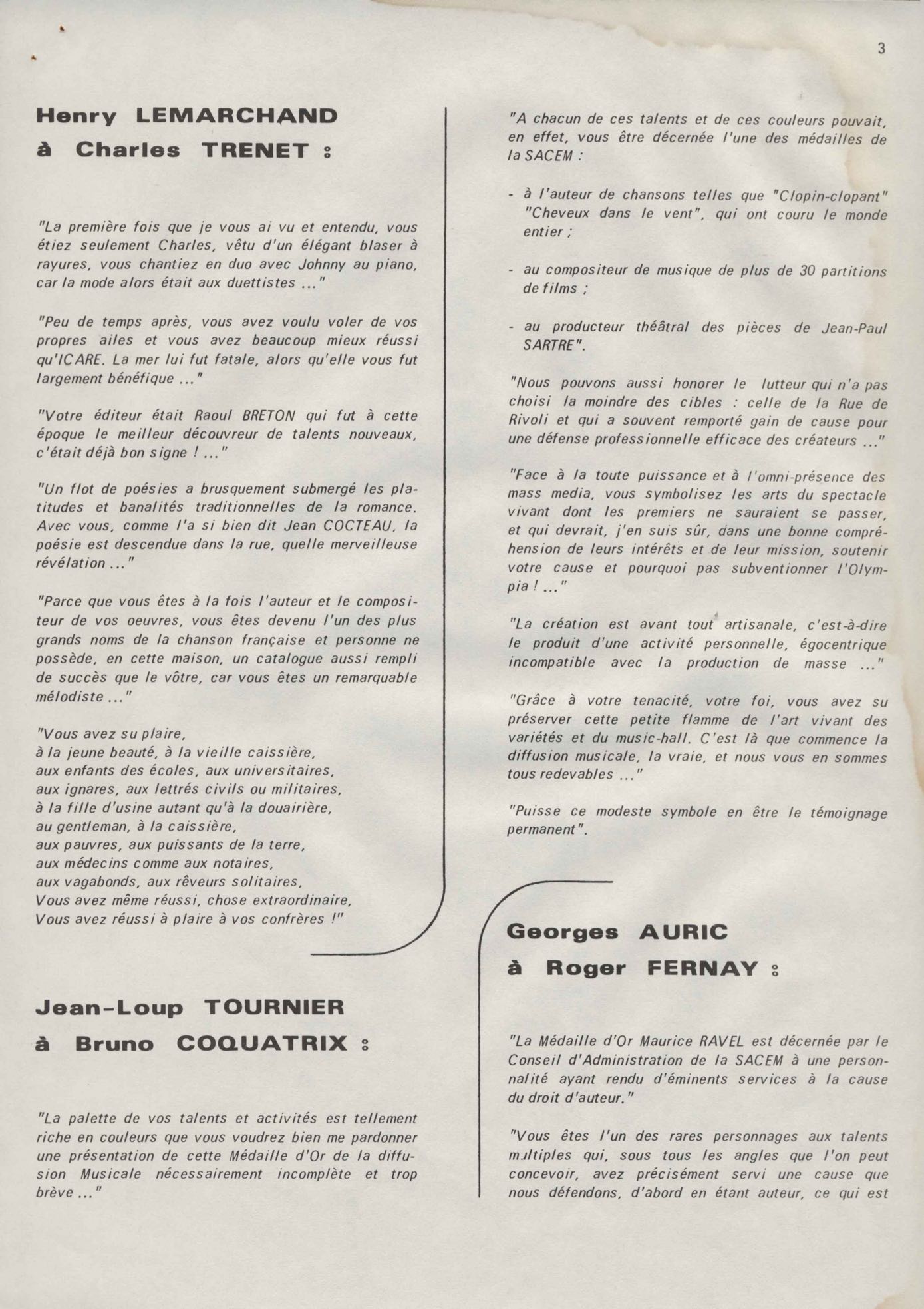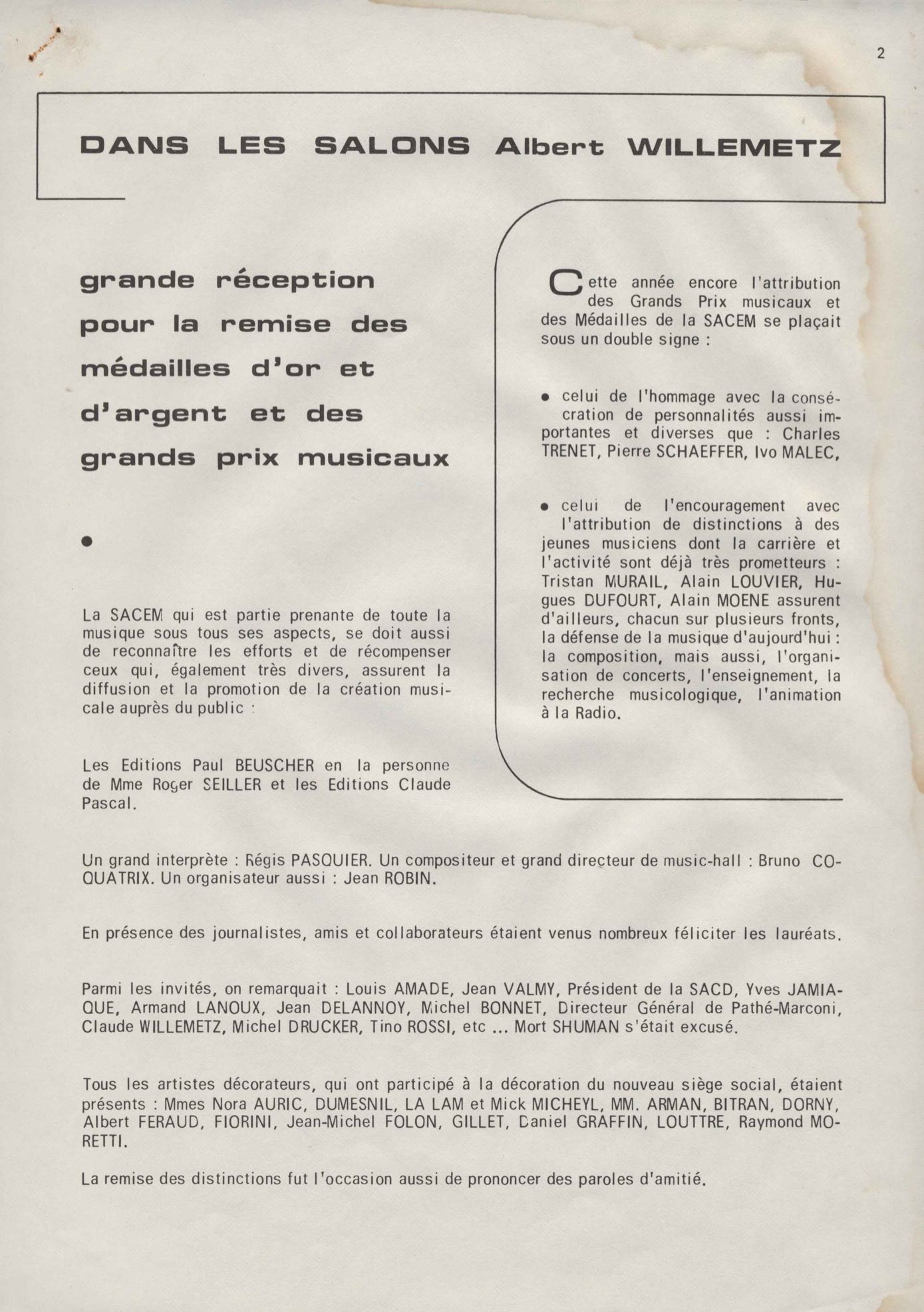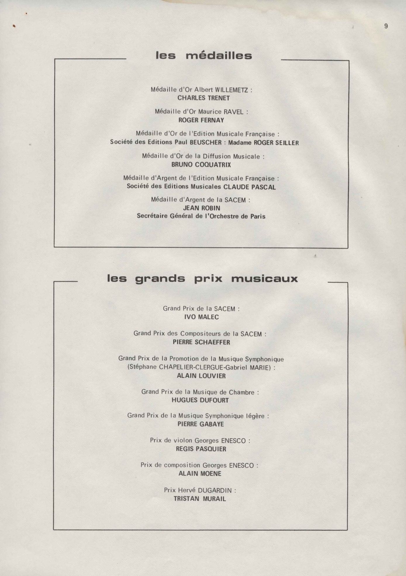 Boletim de informação nº 41, sobre a entrega de medalhas para personalidades do mundo musical.