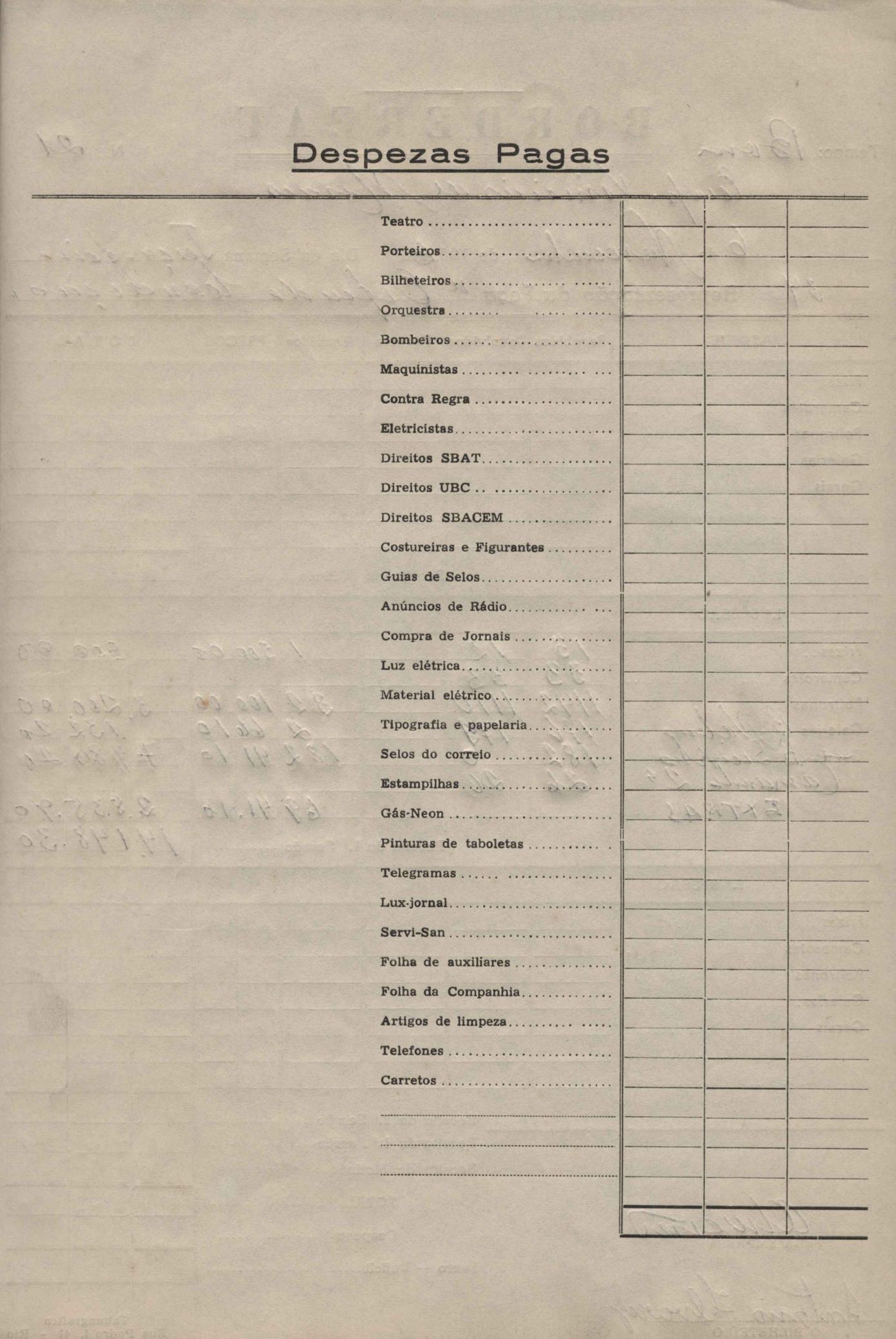 Borderô da representação da peça Orfeu da Conceição, de VM.