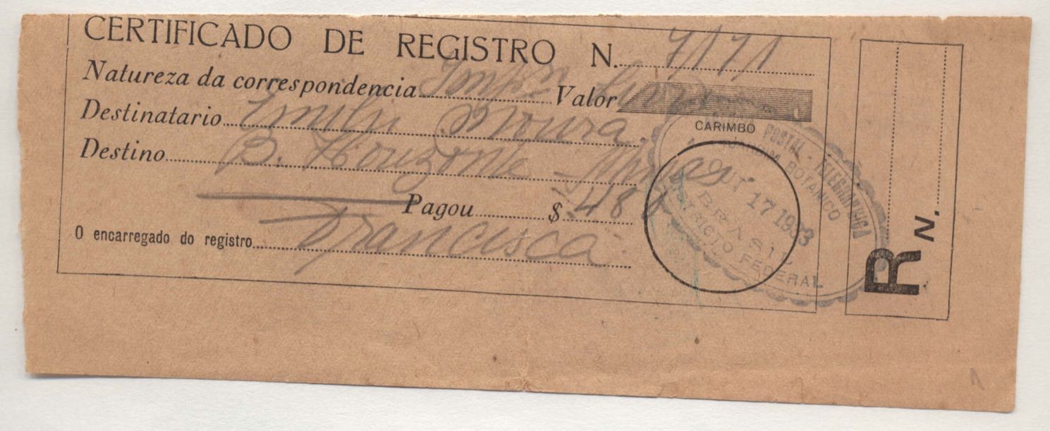 AUTOR: AGÊNCIA POSTAL - TELEGRAPHICA [JARDIM BOTÂNICO]