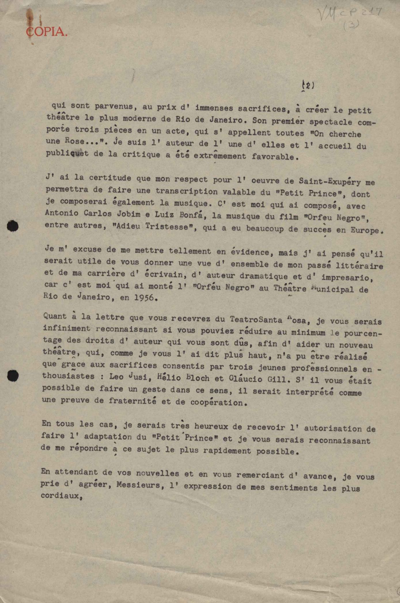 Solicitação para VM adaptar para teatro, em português, Le petit prince, de Saint-Exupéry.