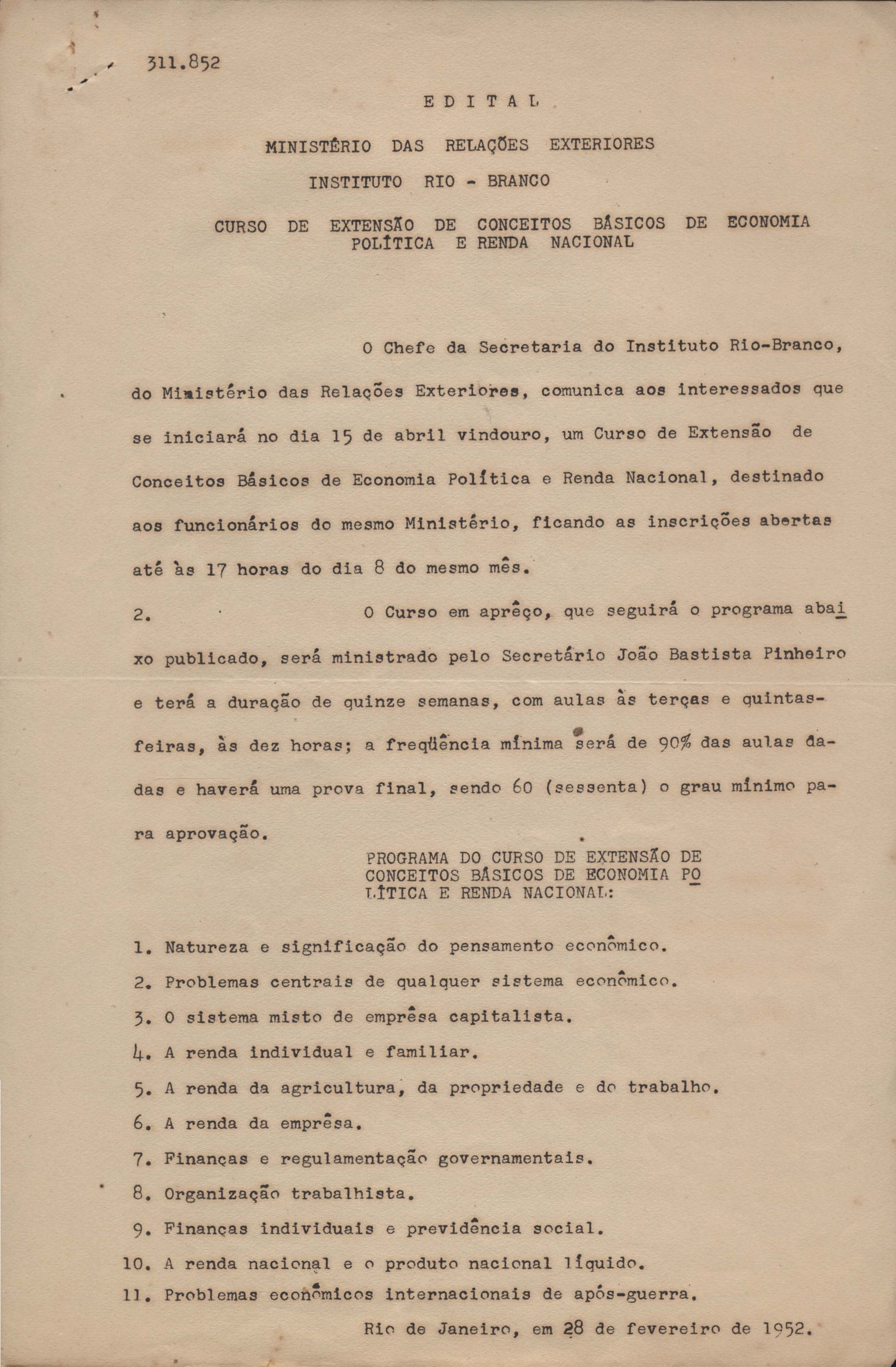 Edital do curso de extensão de conceitos básicos de economia política e renda nacional.