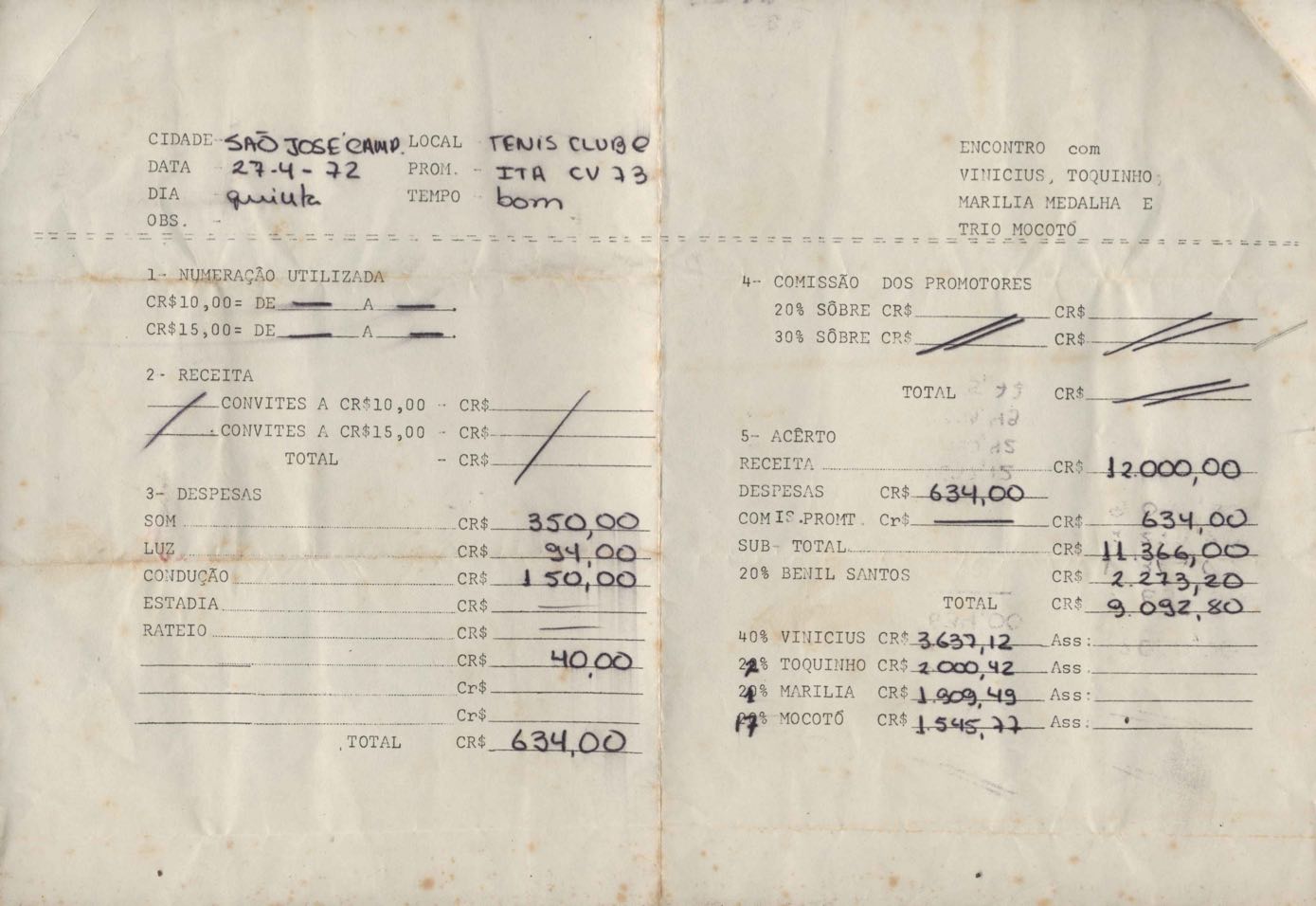 Relatório do show Encontro, com VM, Toquinho, Marília Medalha e Trio Mocotó.