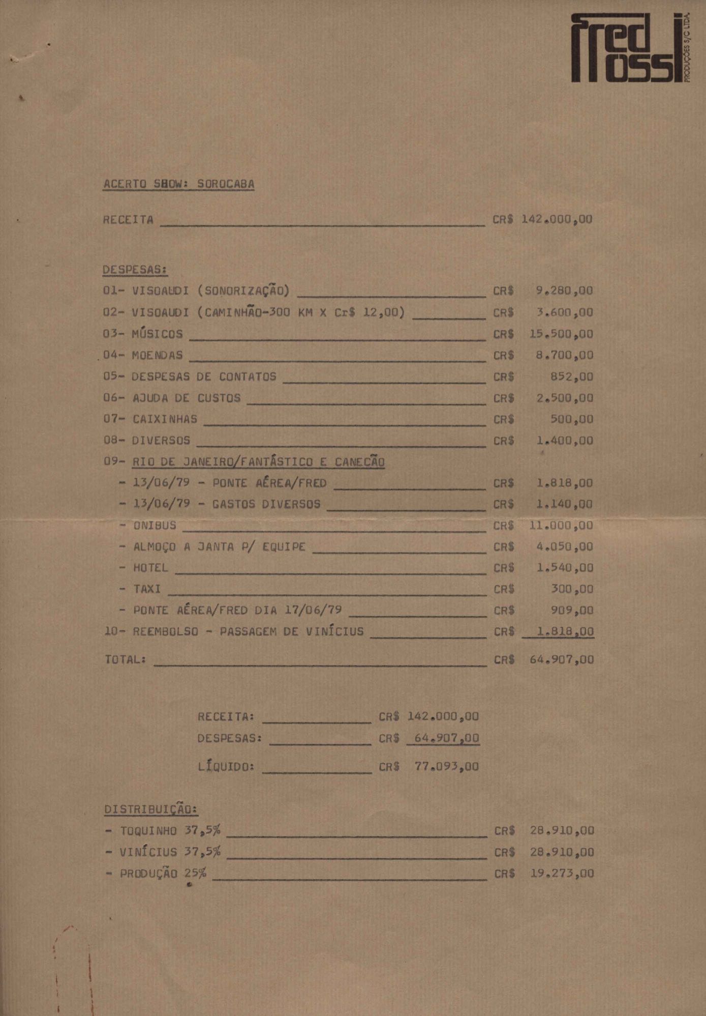 Relatório referente às despesas de shows, programas e reembolso de passagens de VM e de sua equipe.
