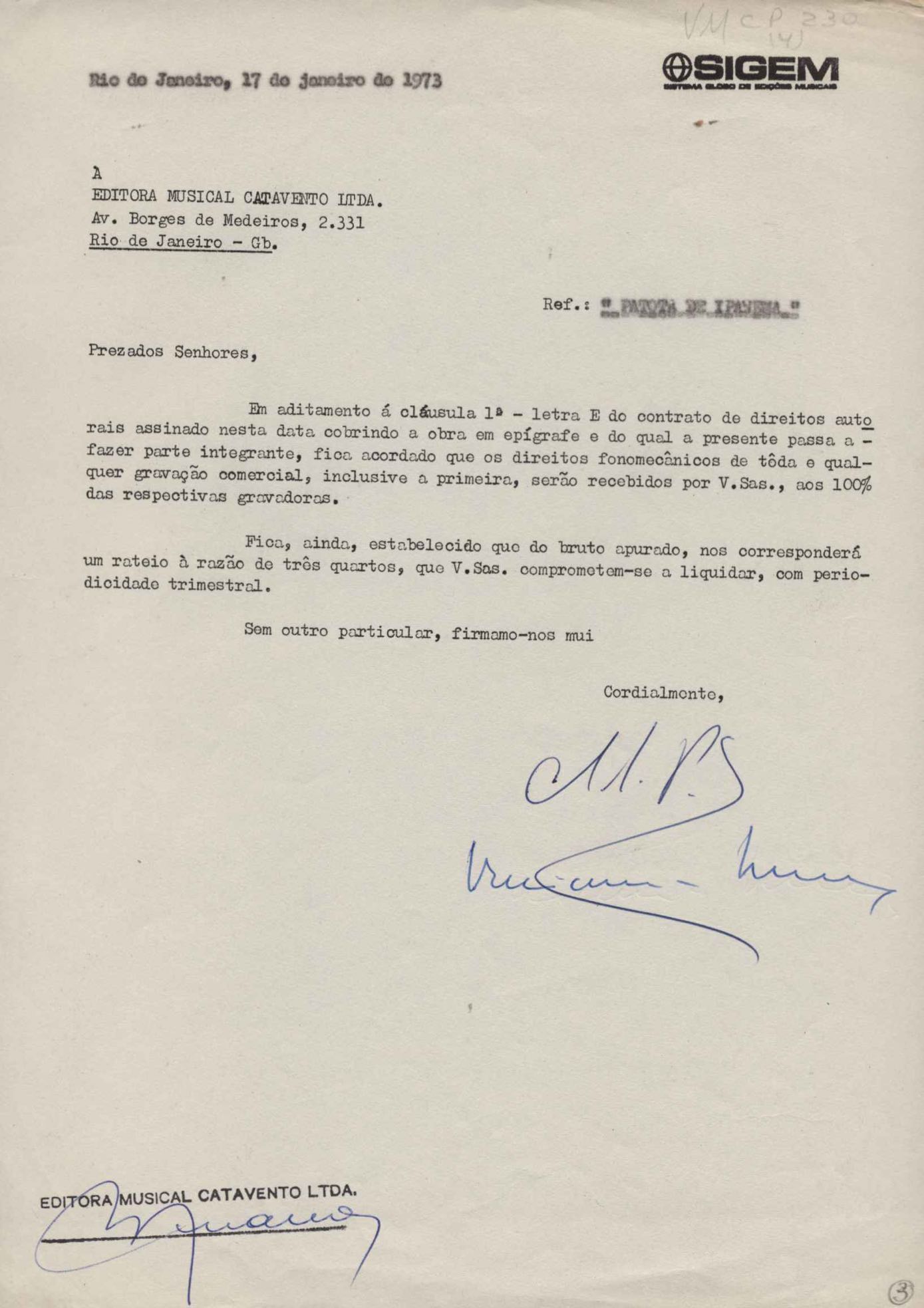 AUTOR: EDITORA MUSICAL CATAVENTO; MORAES, Vinicius de