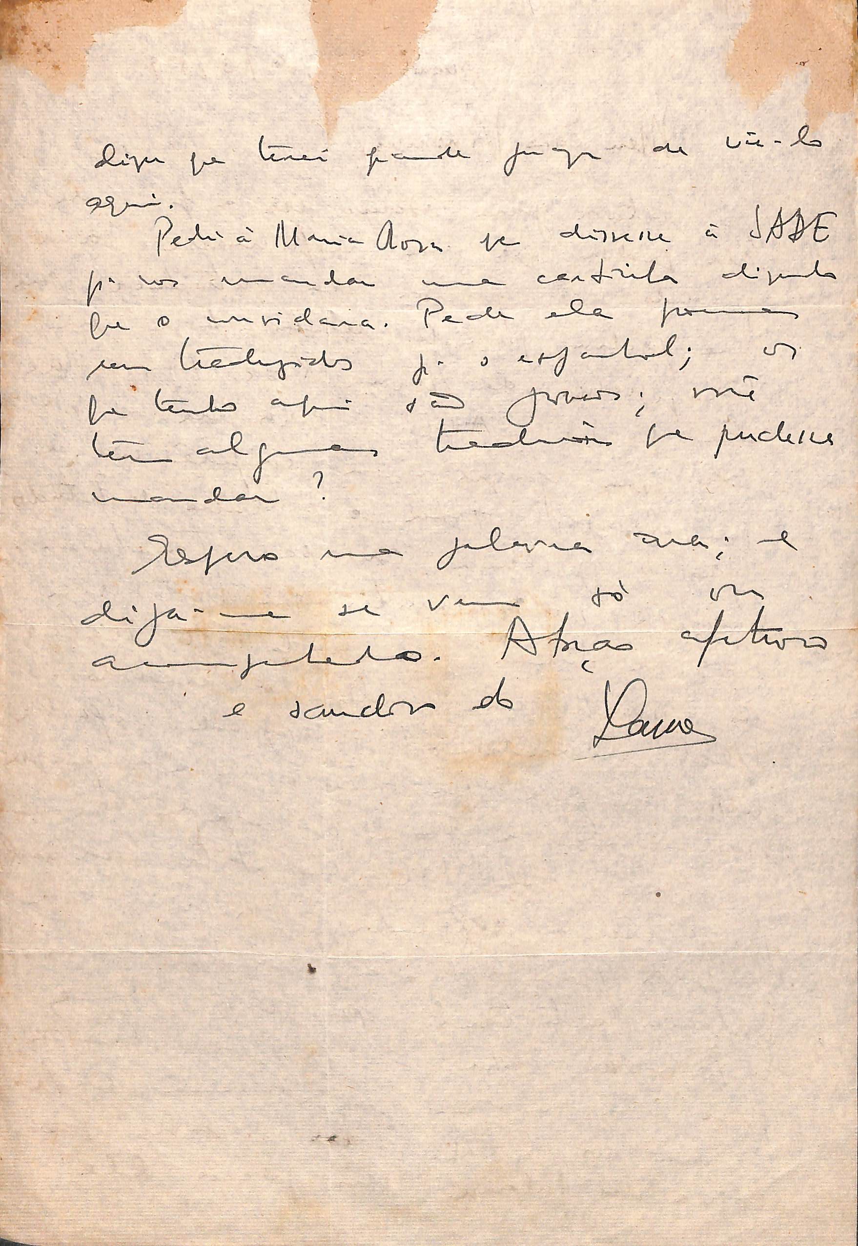 1. Duas cartas são assinadas por Sara, Srª Lauro Escorel; 2. Uma das cartas está incompleta.
