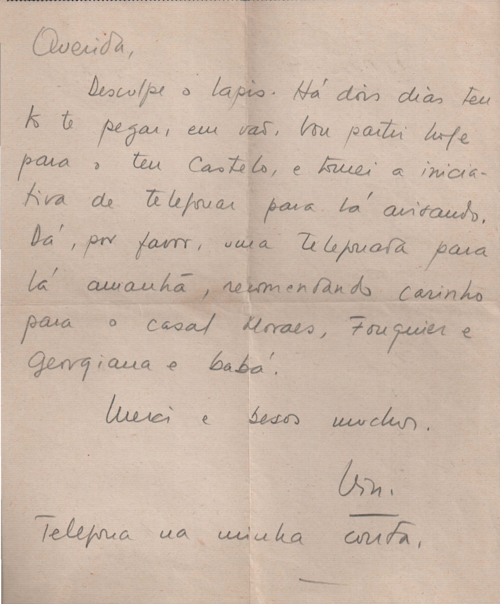 Carta a Lygia Cruz de Moraes