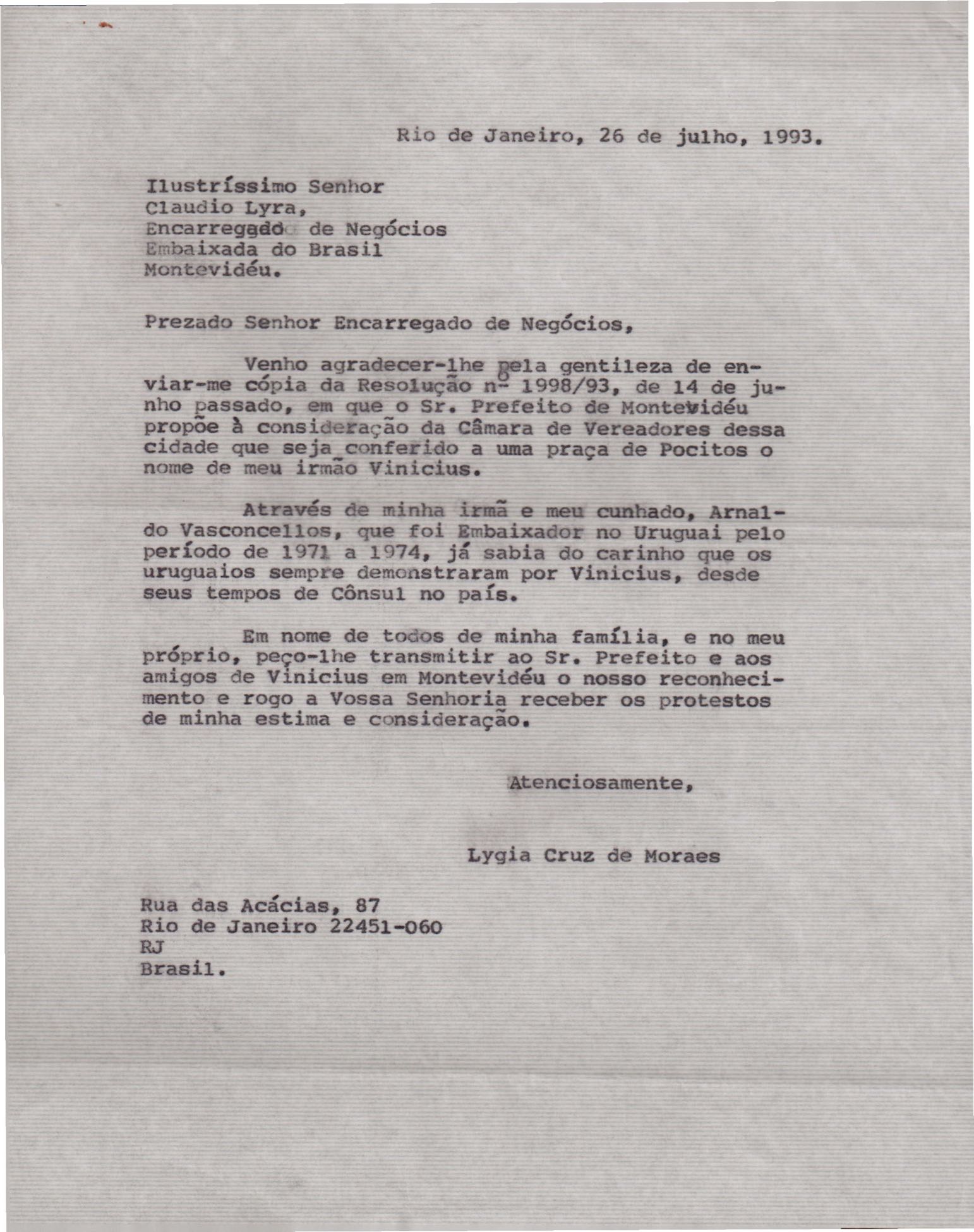 Agradecimento pela resolução enviada da Câmara de Vereadores de Montevidéu.