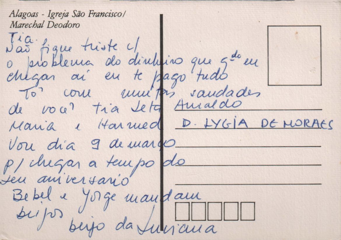 Cartão-postal a Lygia Cruz de Moraes