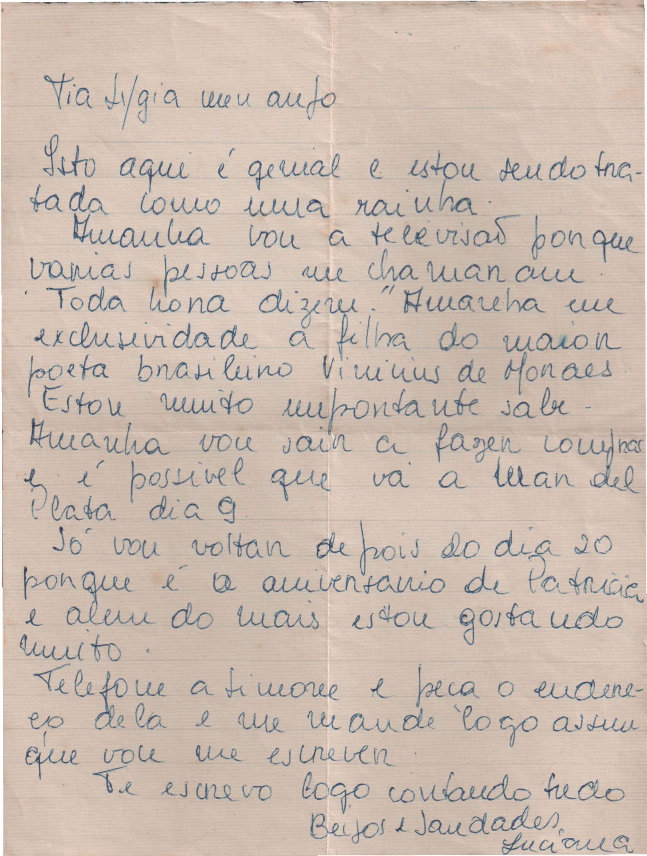 Carta a Lygia Cruz de Moraes