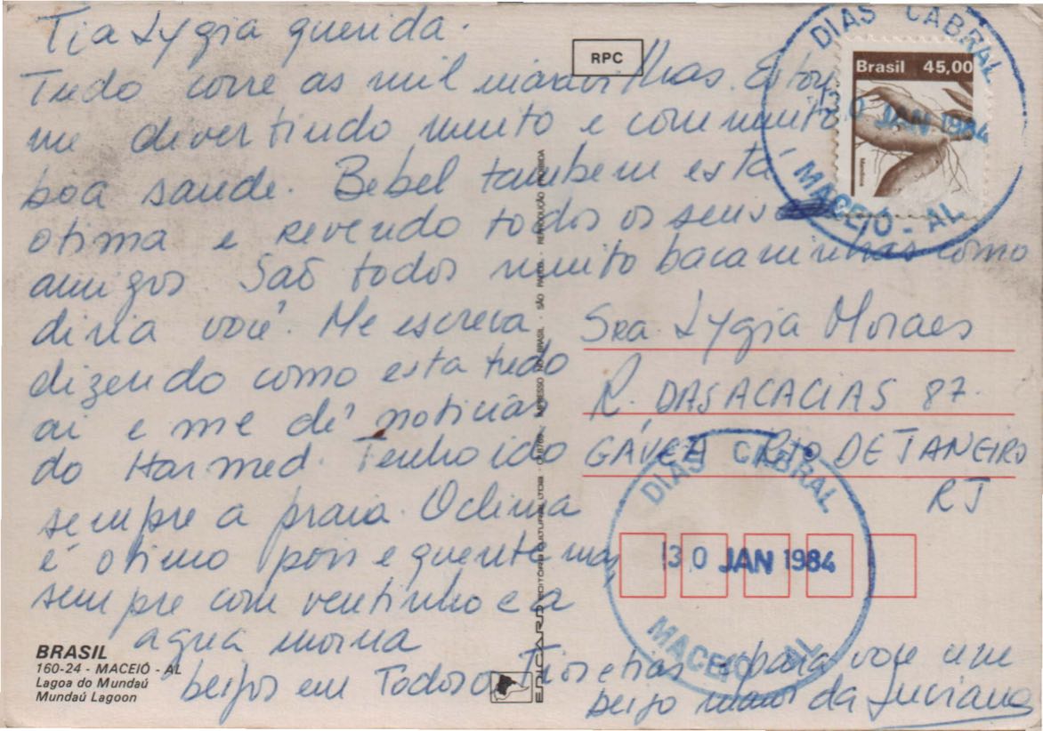 Cartão-postal a Lygia Cruz de Moraes
