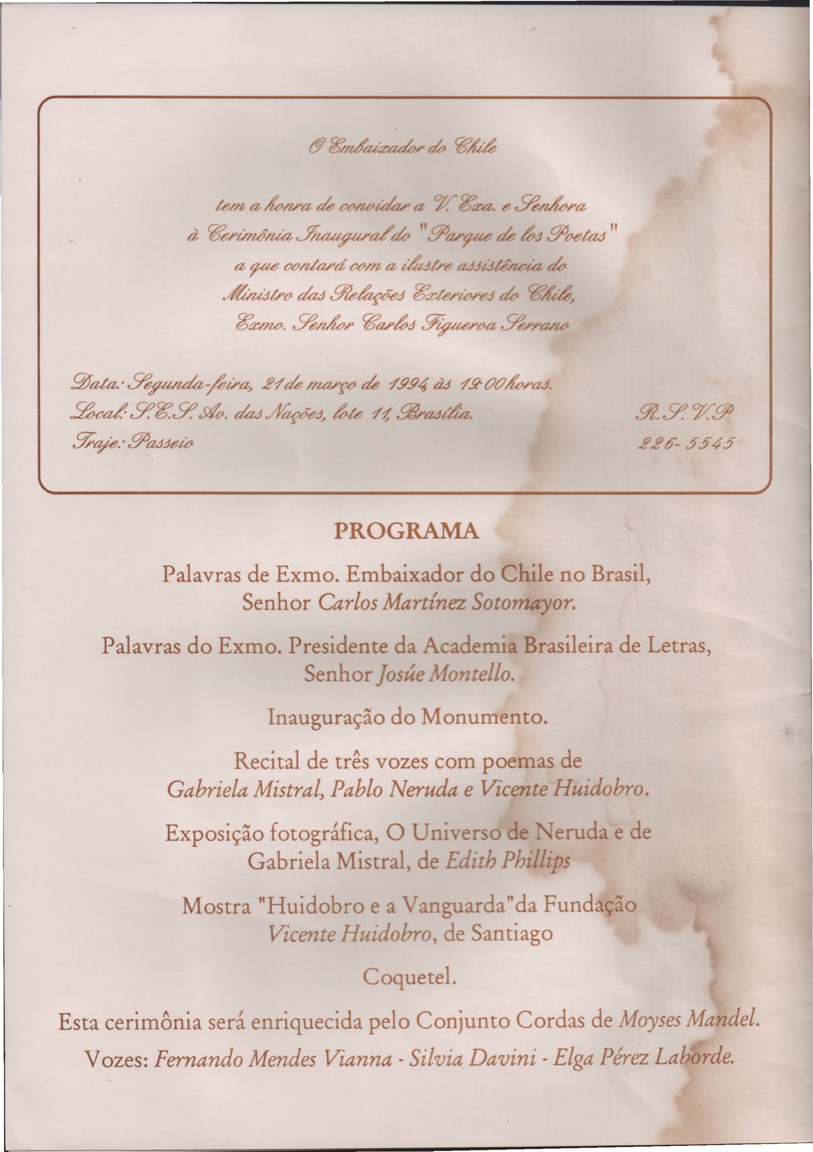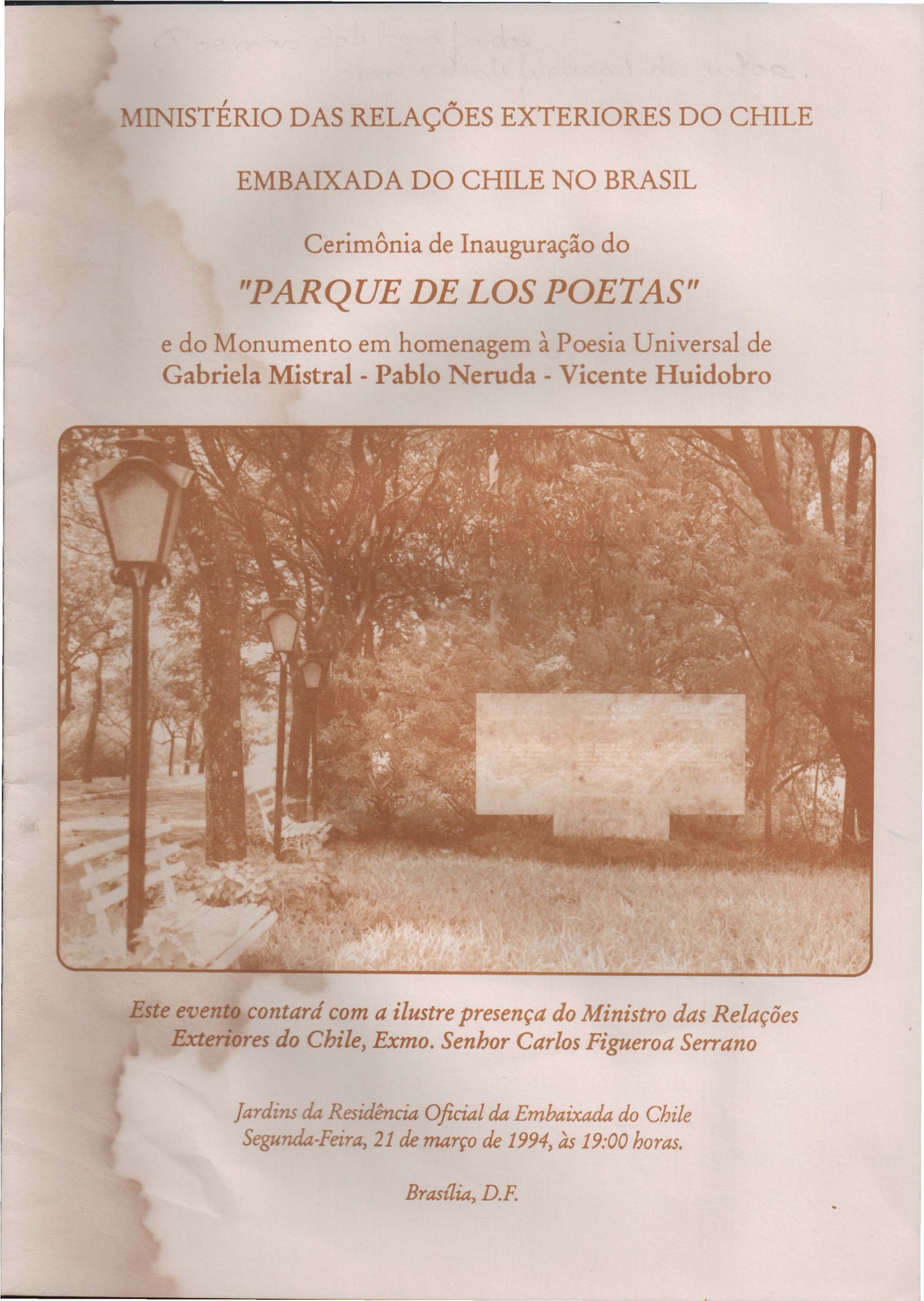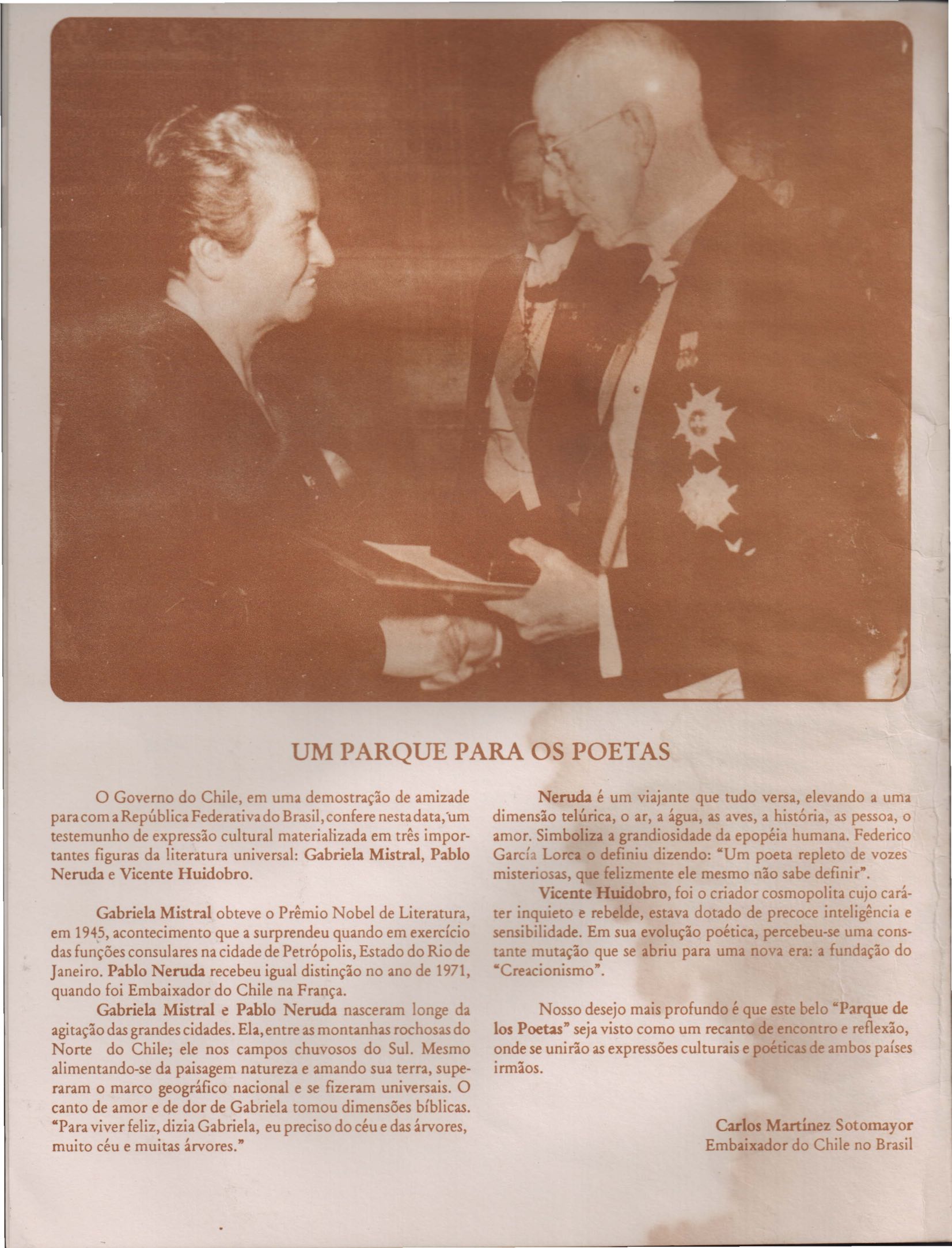 Cerimônia de inauguração do Parque de los poetas e do Monumento em homenagem à Poesia Universal de Gabriela Mistral, Pablo Neruda e Vicente Huidobro.