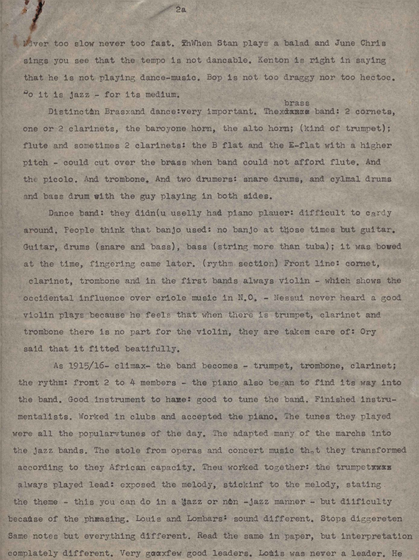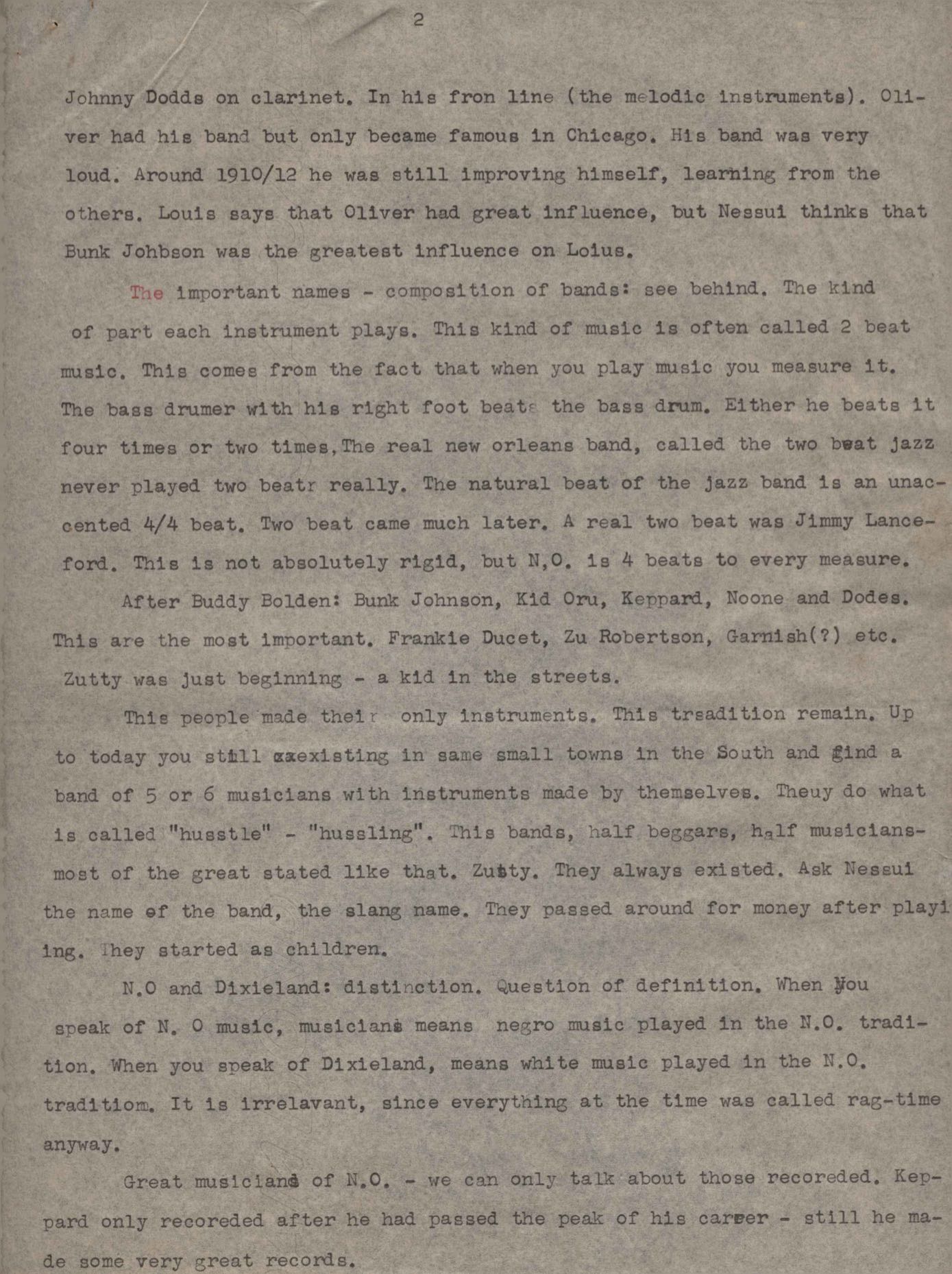 "We are going to deal with the first jazz band in N.O. after telling about Buddy Bolden atc"