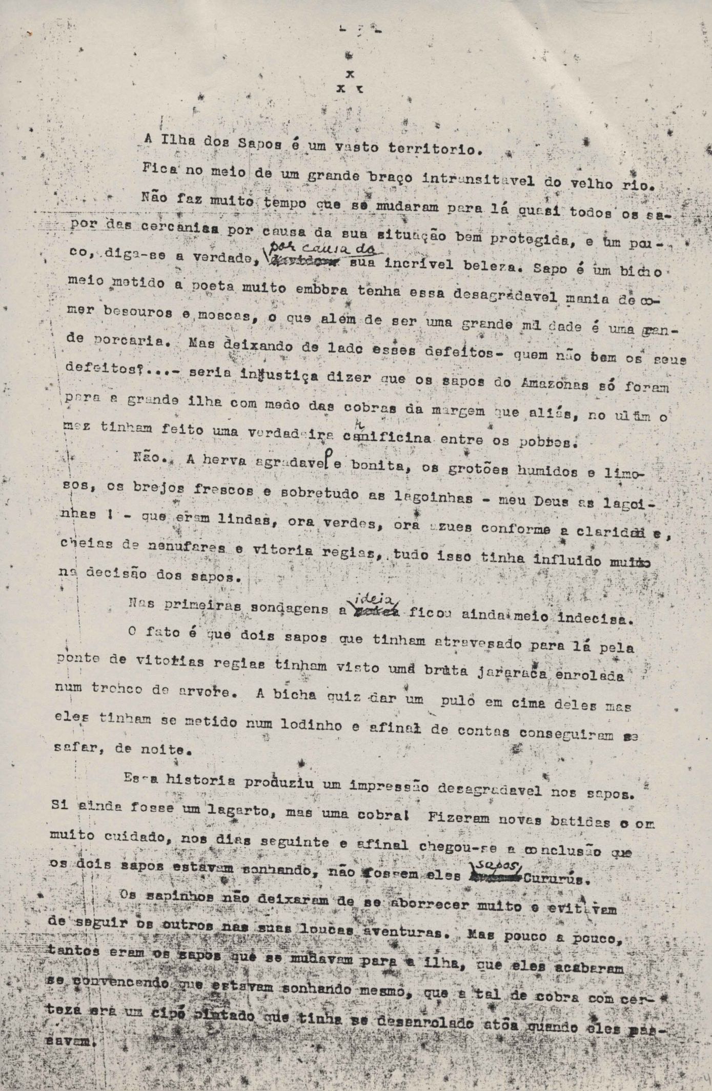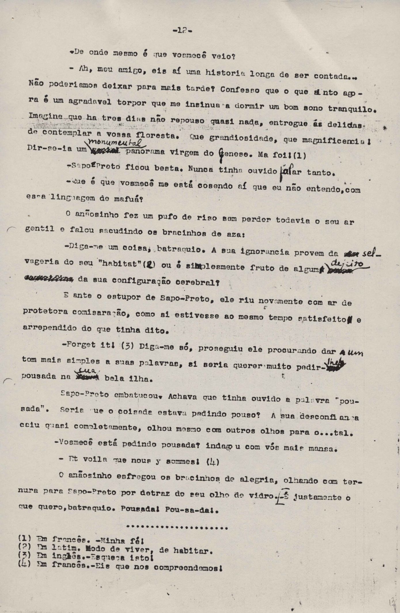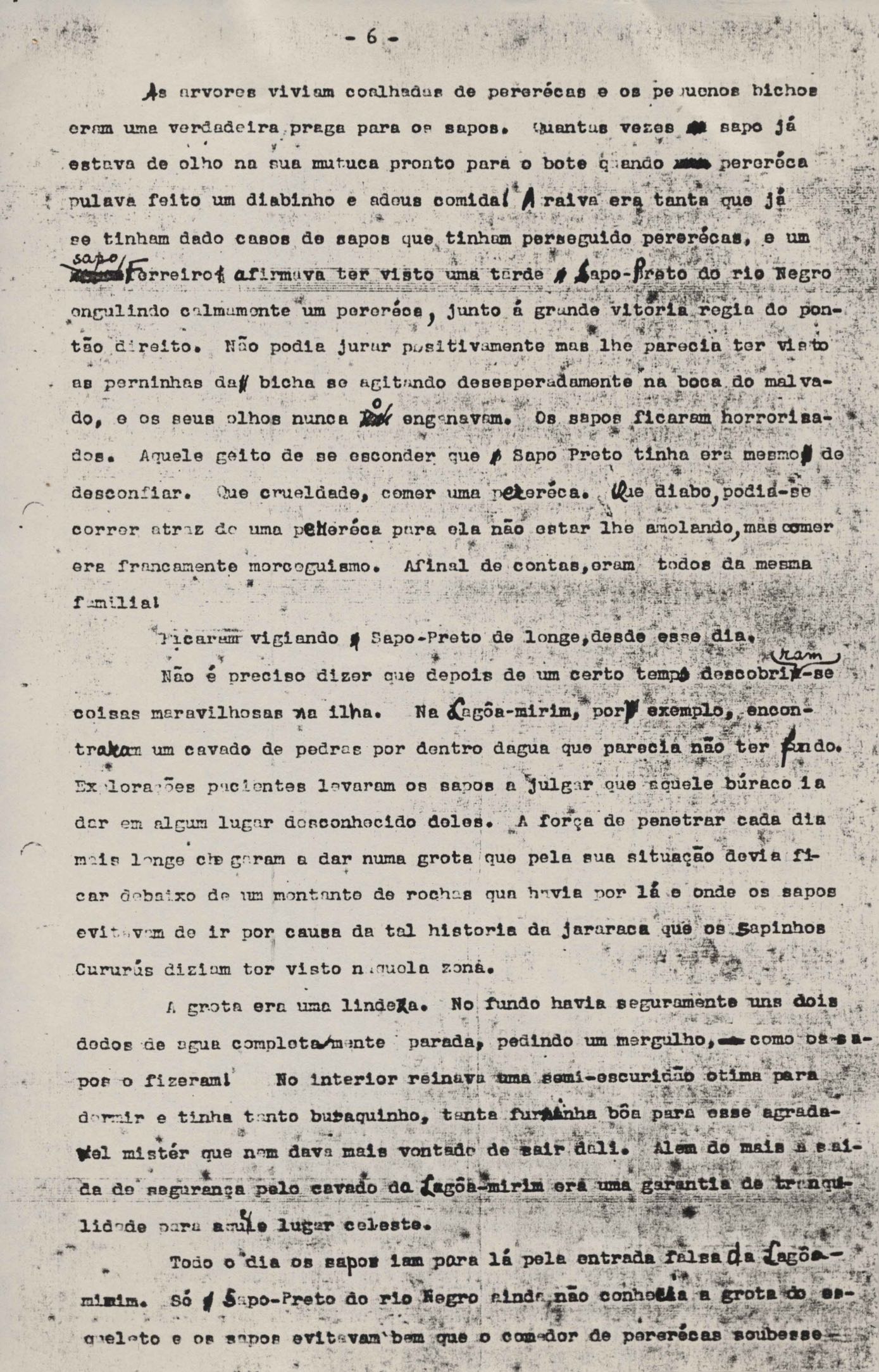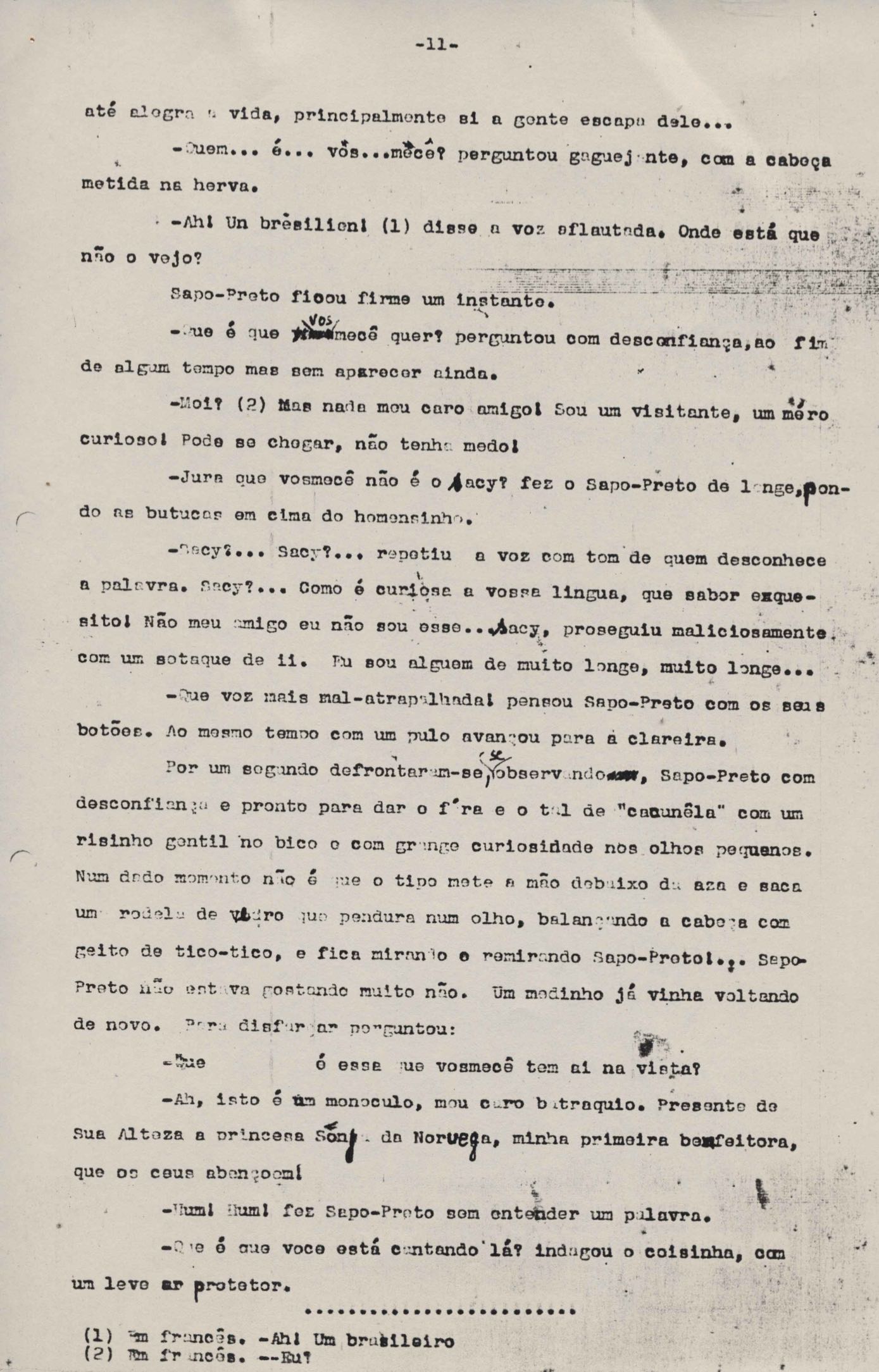 Conto. Cópia carbonada. Há documento incompleto. Há anotações no verso da última folha do conto "Cuidado, que você cai!".