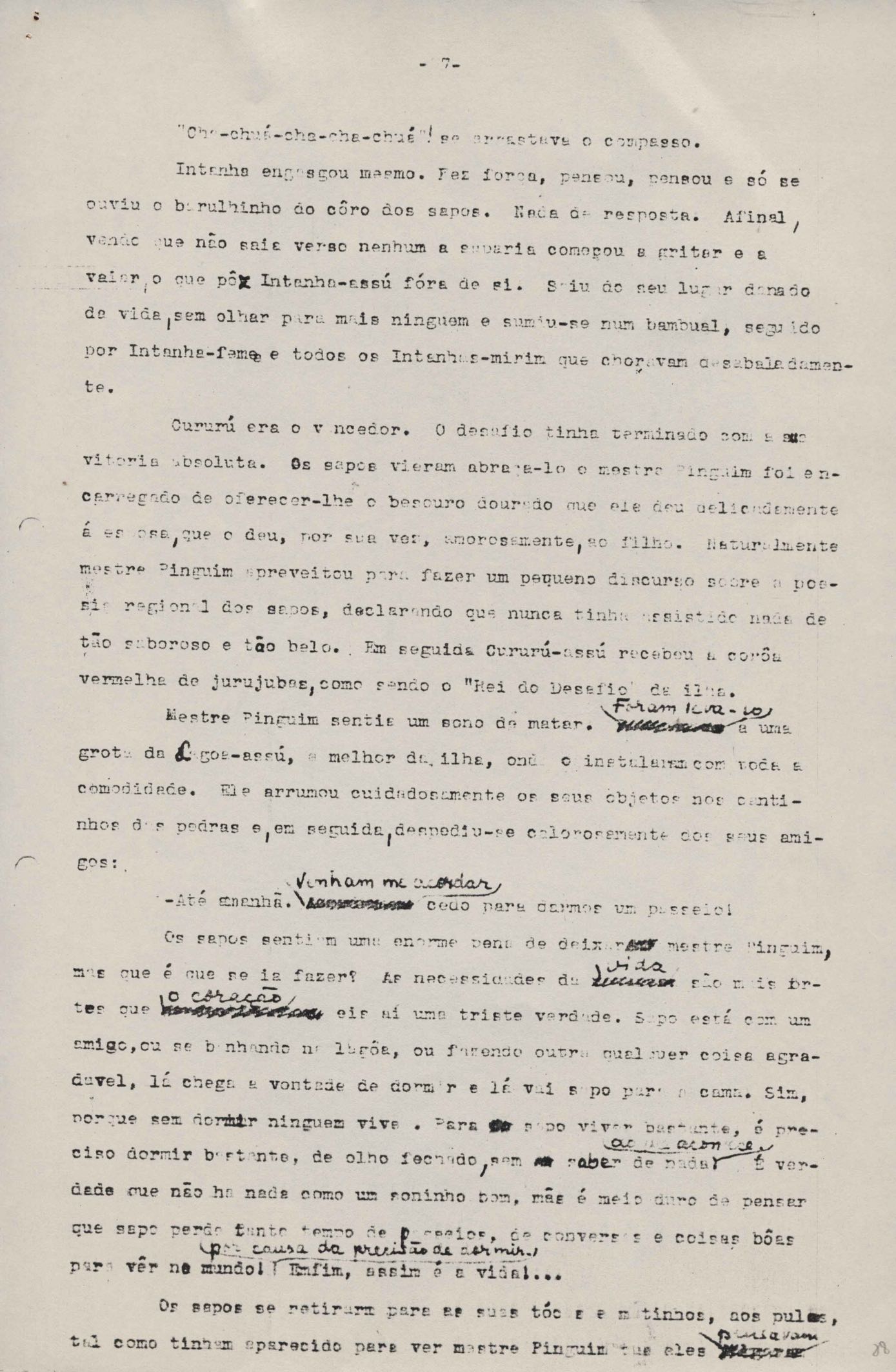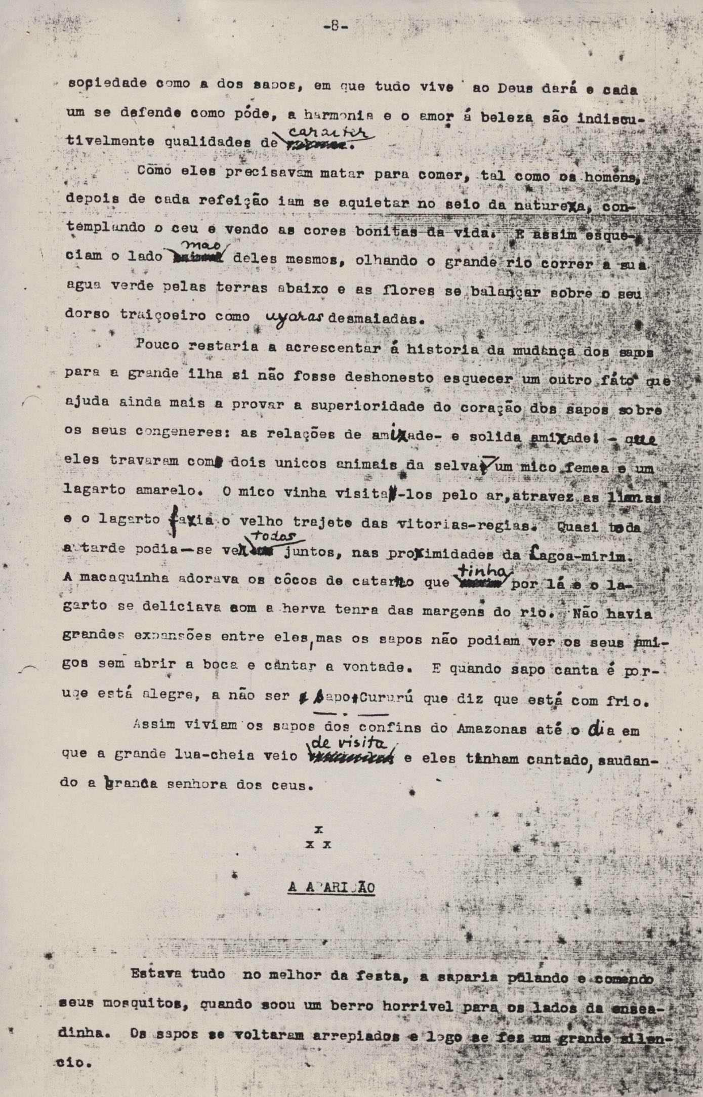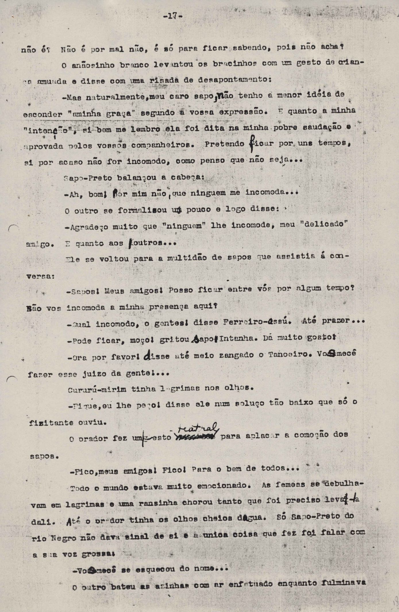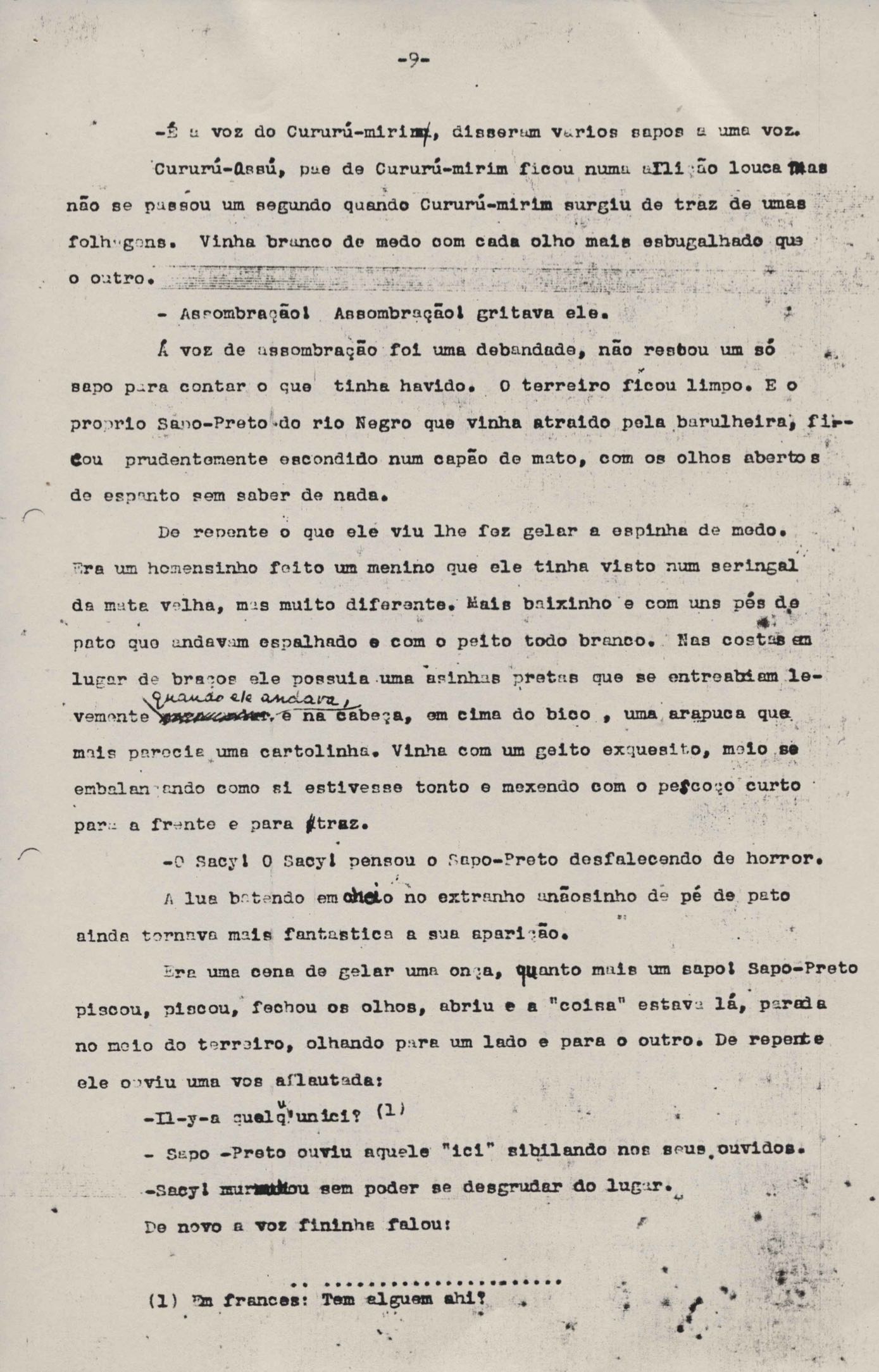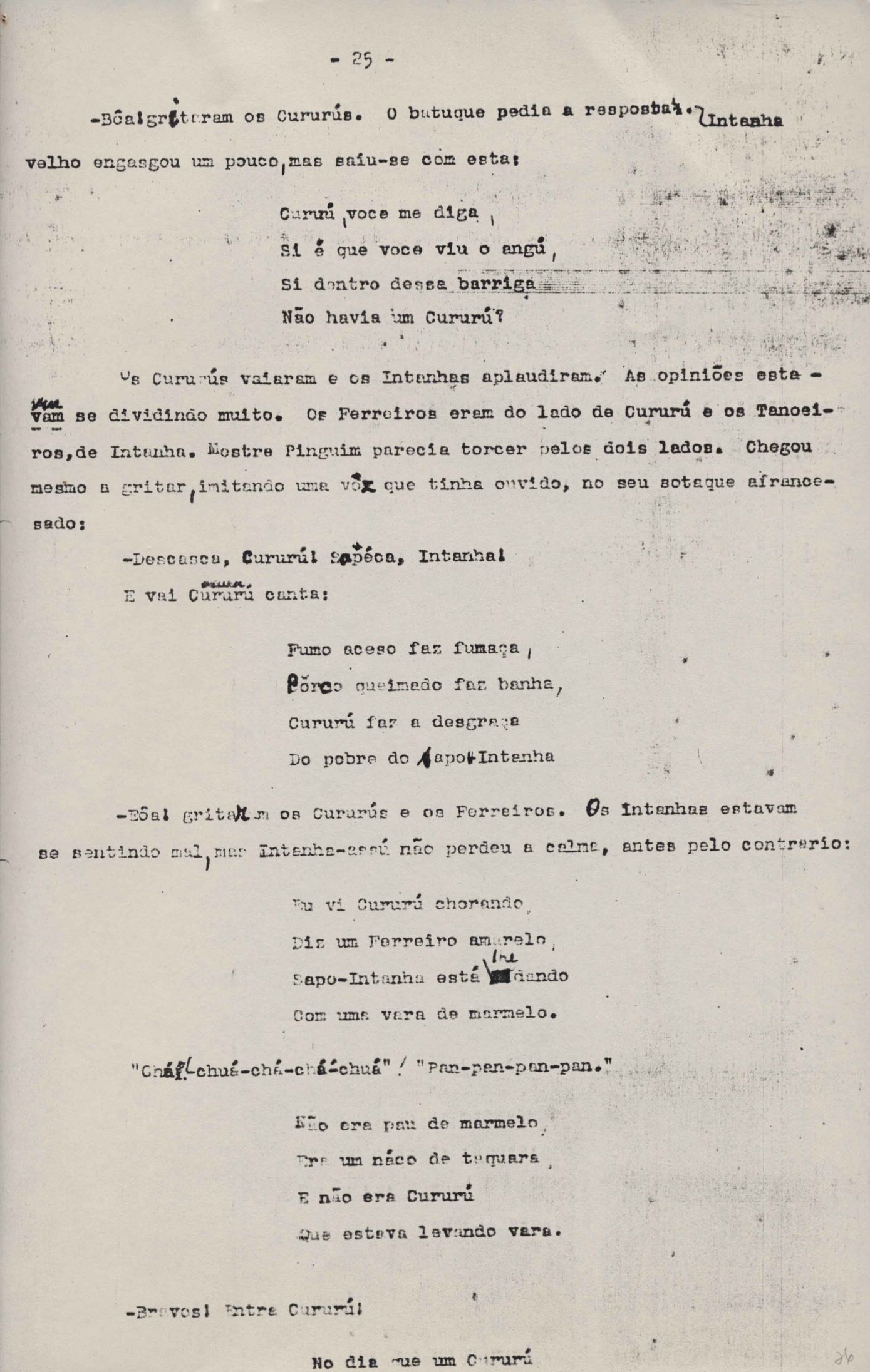 Conto. Cópia carbonada. Há documento incompleto. Há anotações no verso da última folha do conto "Cuidado, que você cai!".