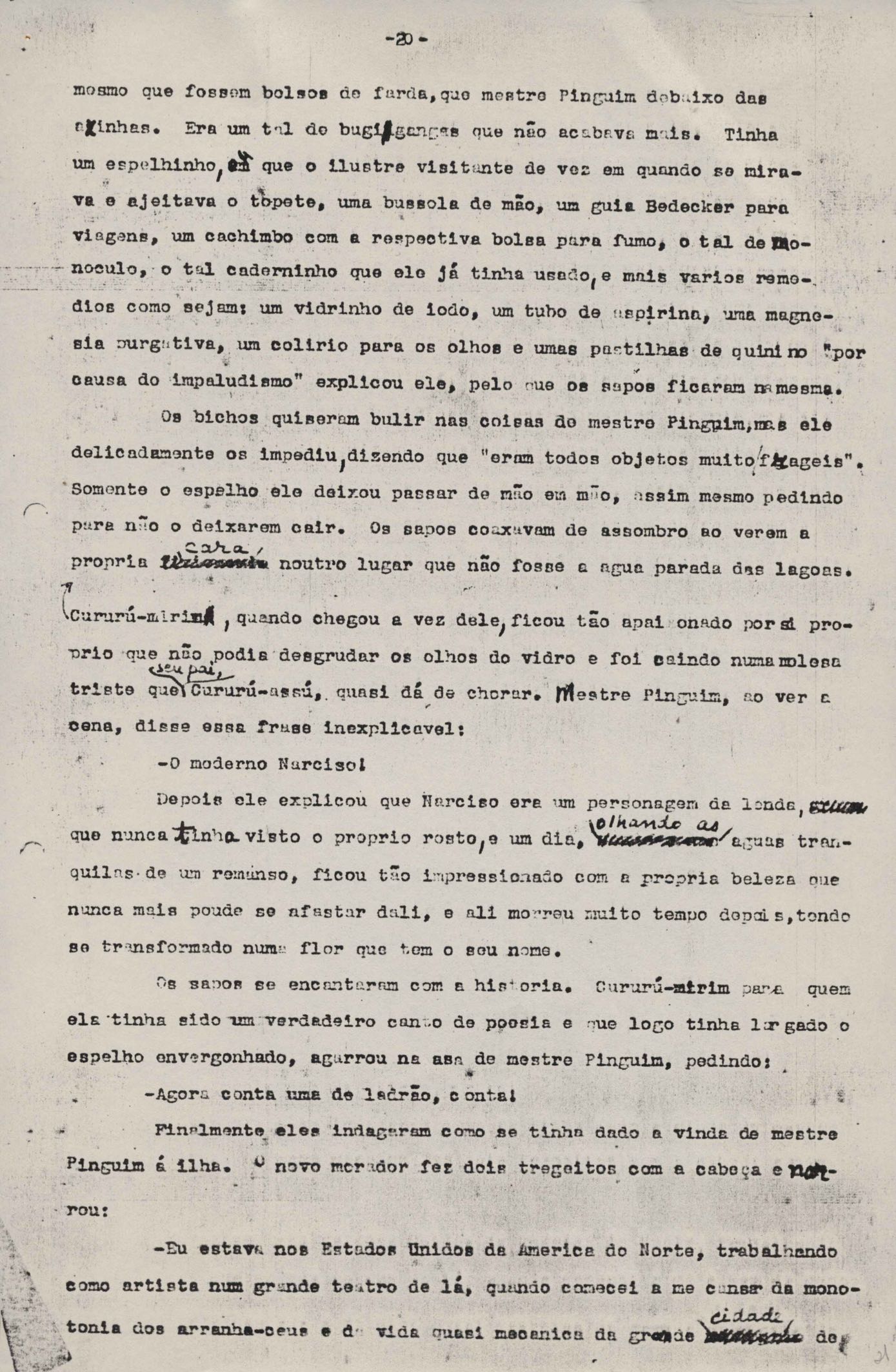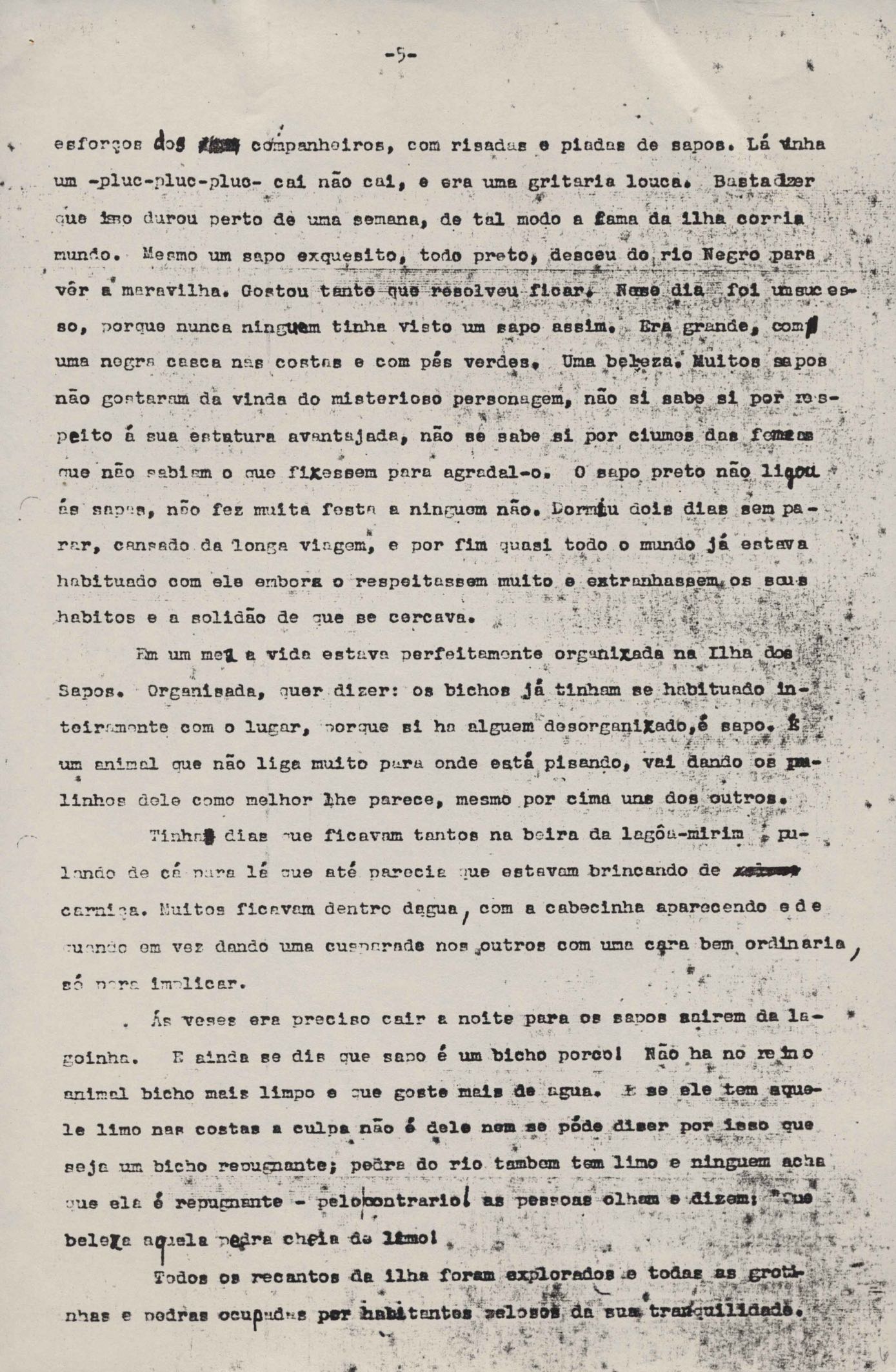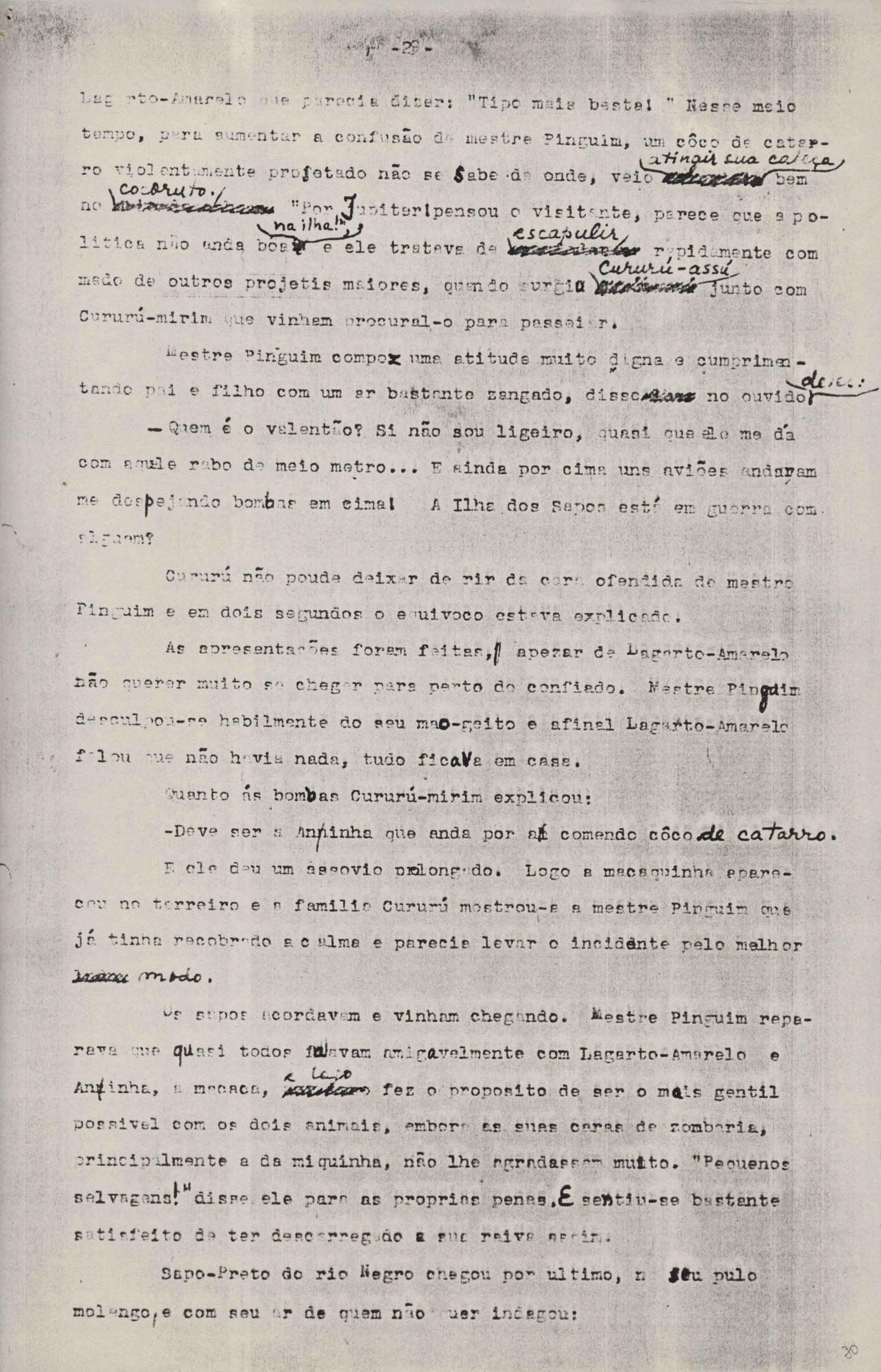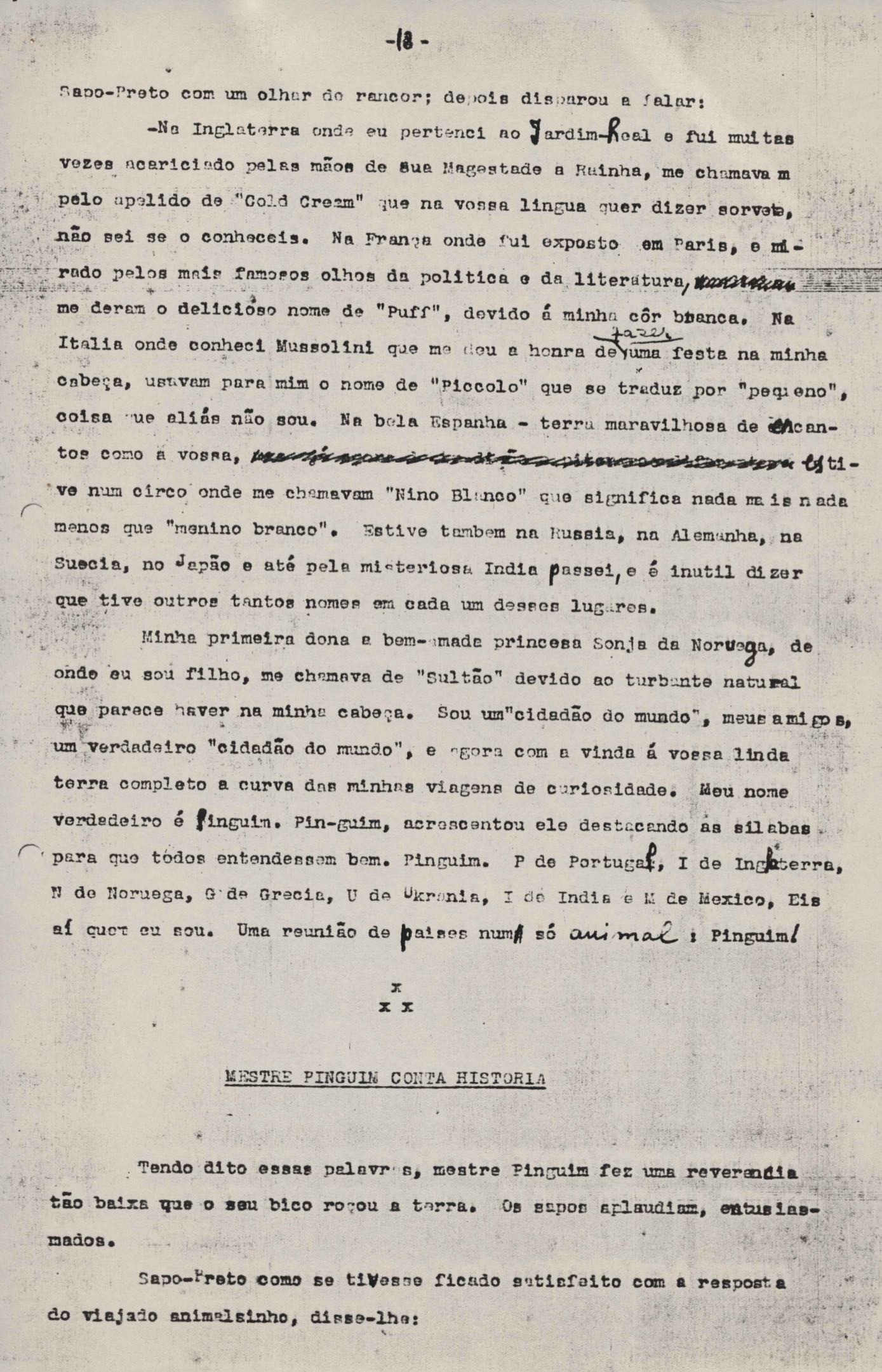Conto. Cópia carbonada. Há documento incompleto. Há anotações no verso da última folha do conto "Cuidado, que você cai!".
