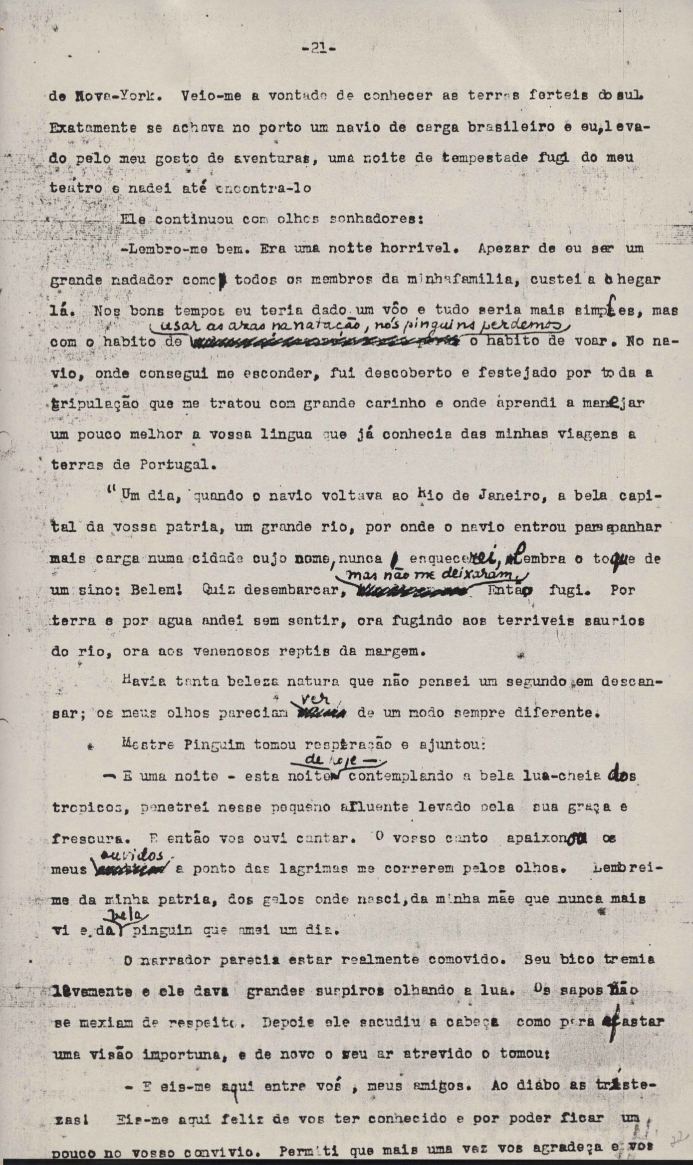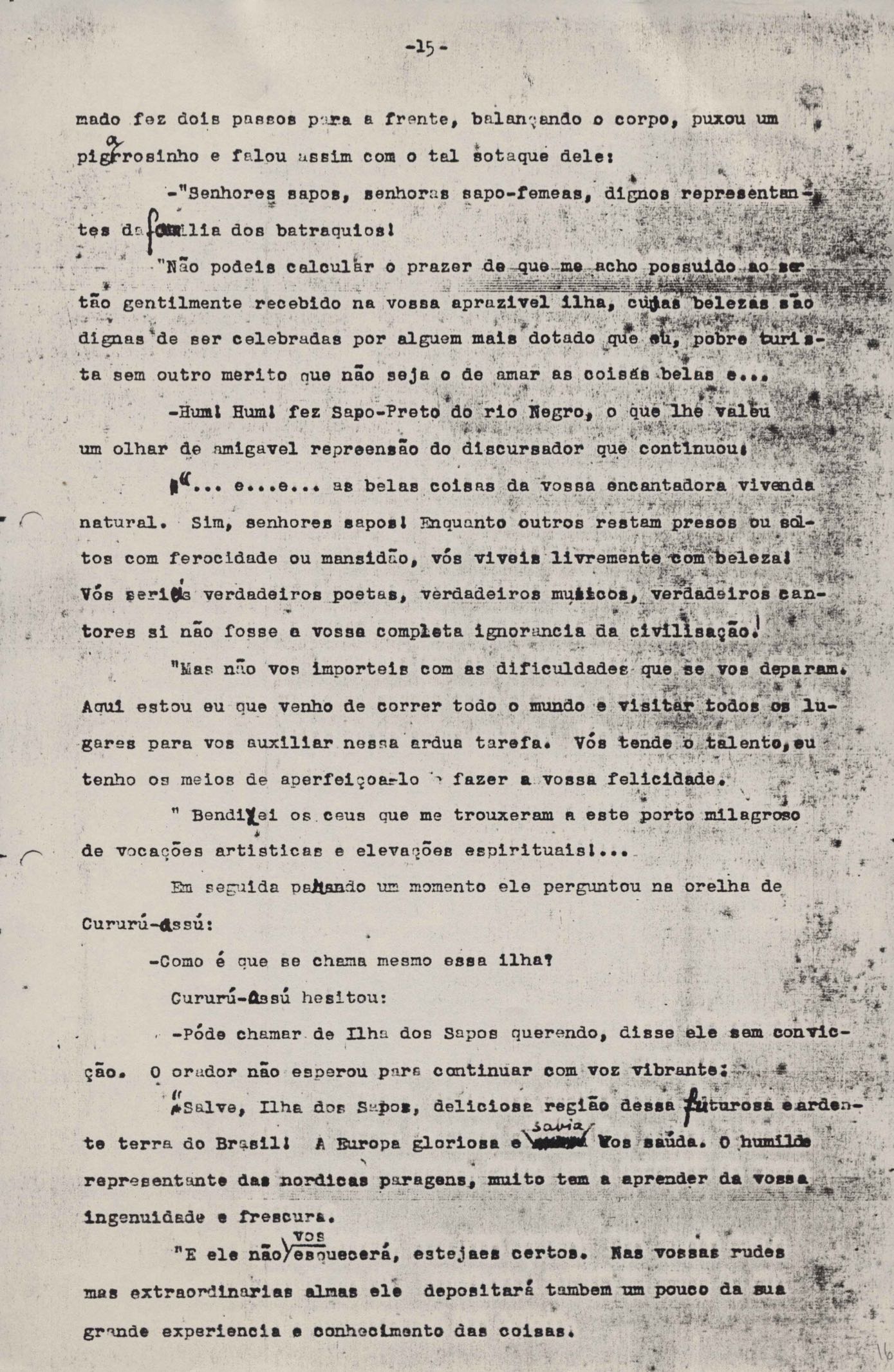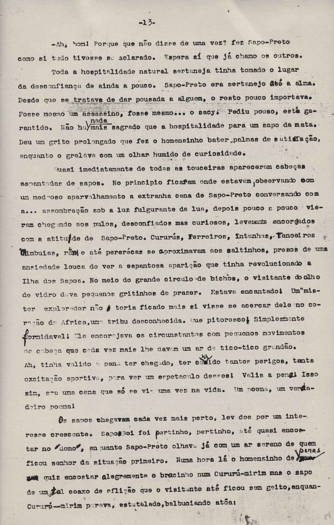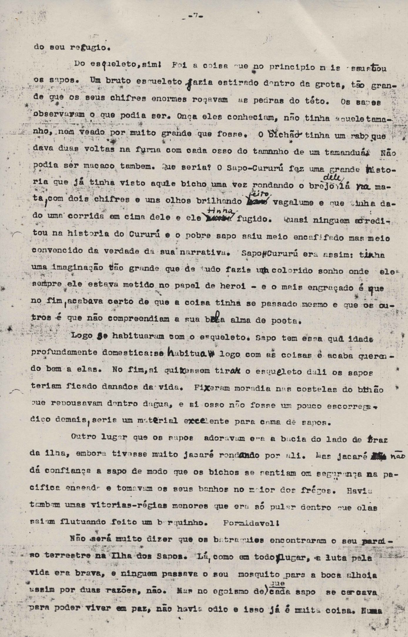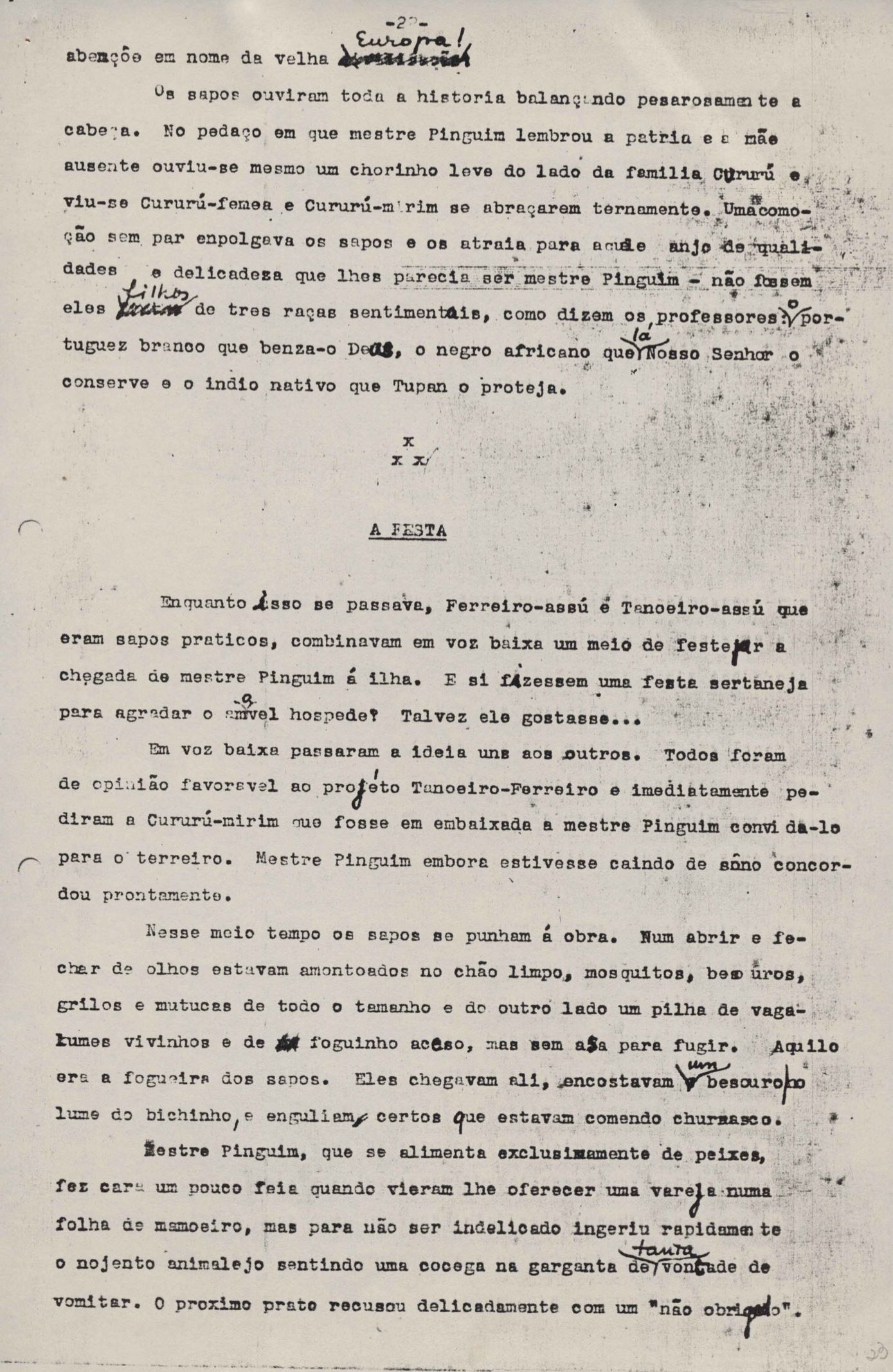 Conto. Cópia carbonada. Há documento incompleto. Há anotações no verso da última folha do conto "Cuidado, que você cai!".