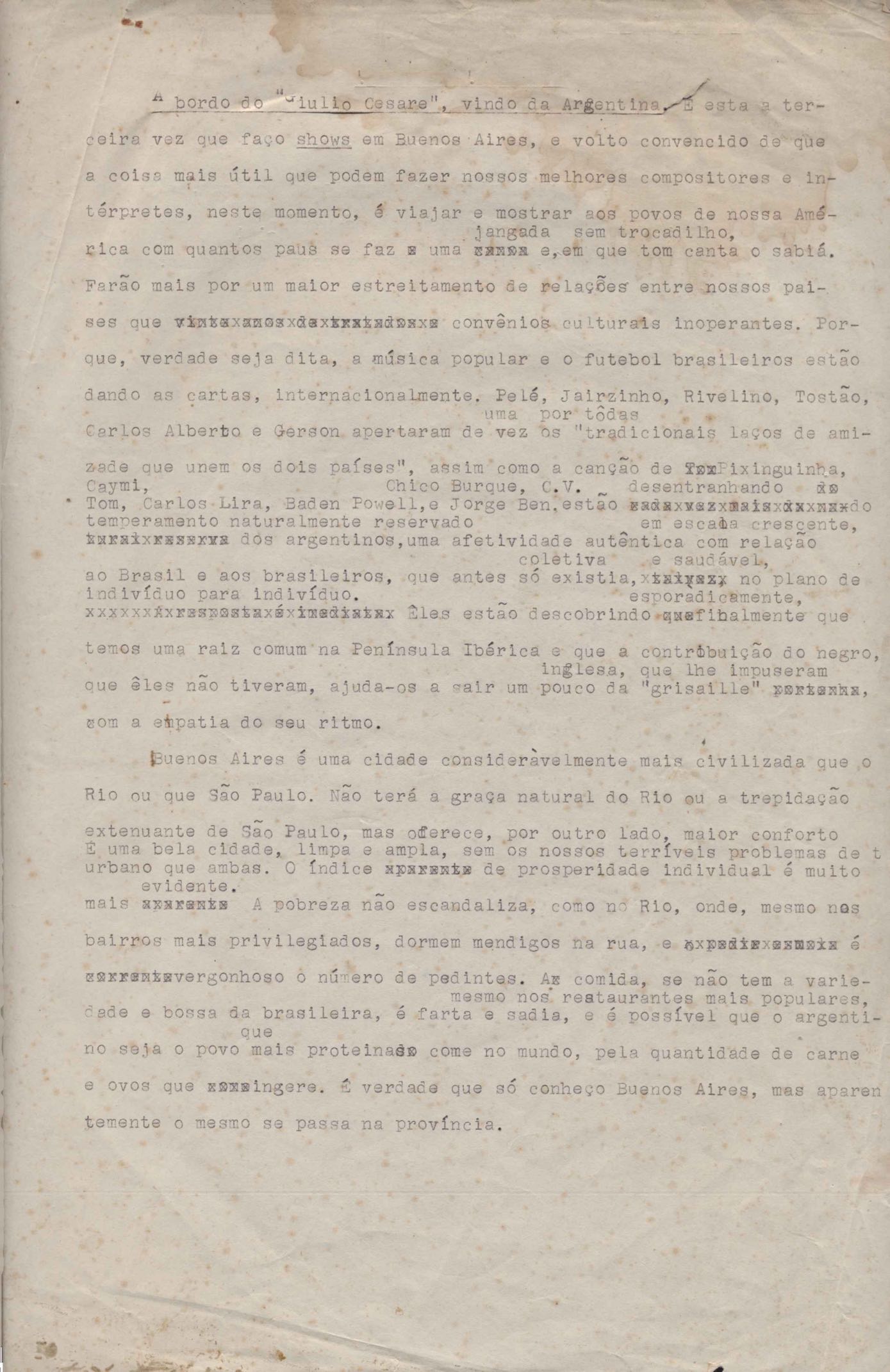 Crônica. Cópia carbonada. Trecho das crônicas "Libelo" e "Carta mortuária a Dolores Duran".