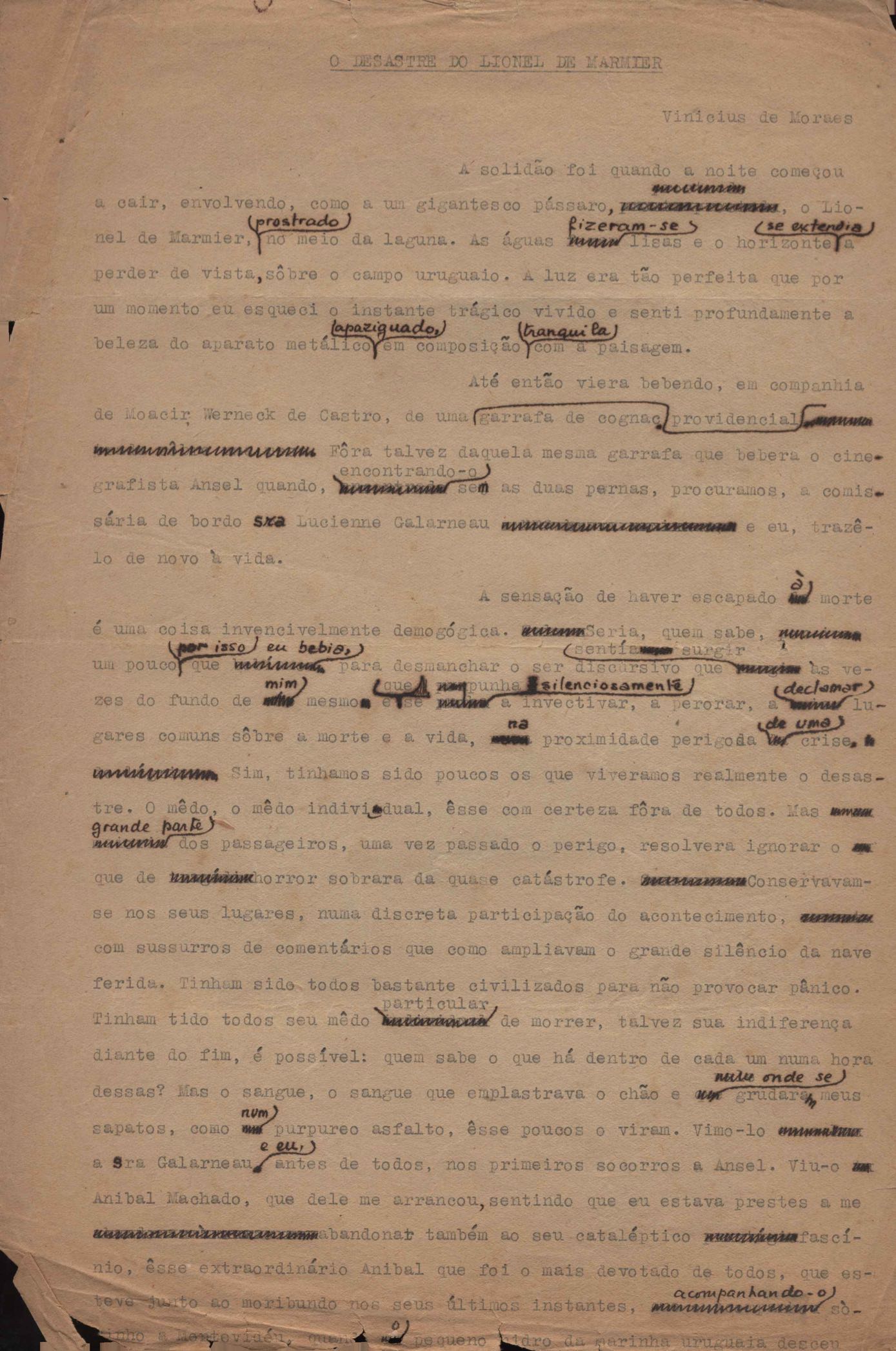 Crônica. Cópia carbonada. Trecho das crônicas "Libelo" e "Carta mortuária a Dolores Duran".