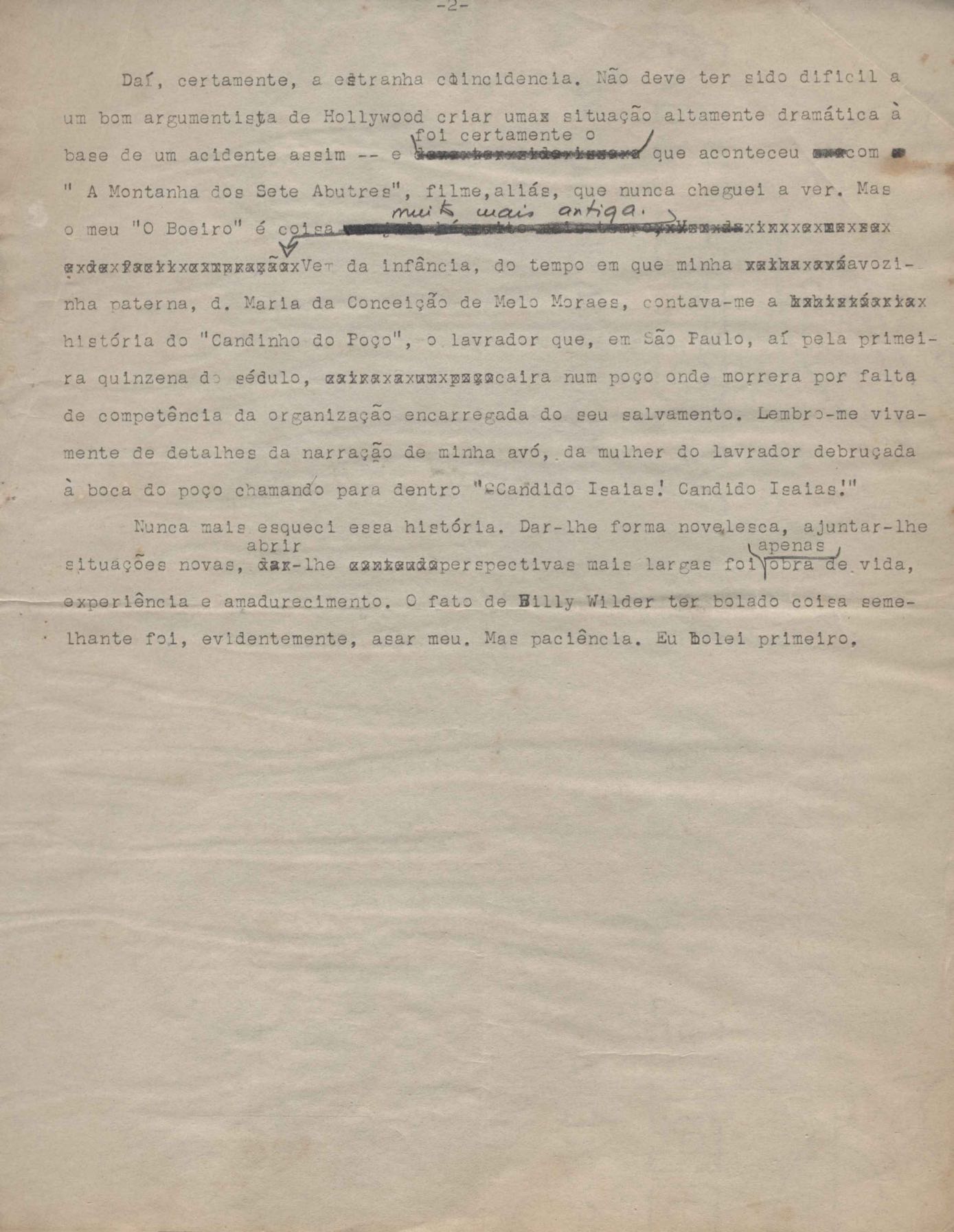 Crônica. Cópia carbonada. Trecho das crônicas "Libelo" e "Carta mortuária a Dolores Duran".