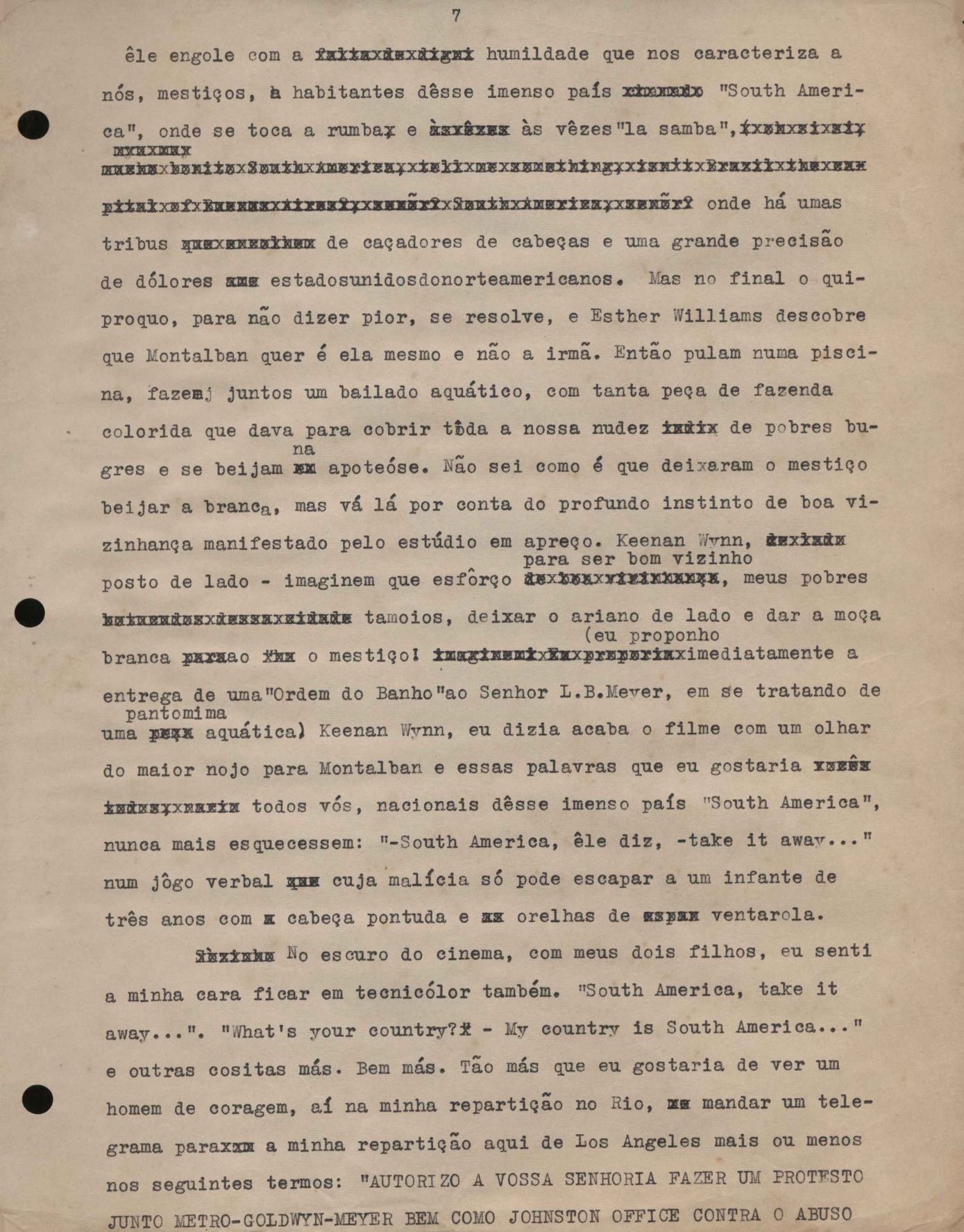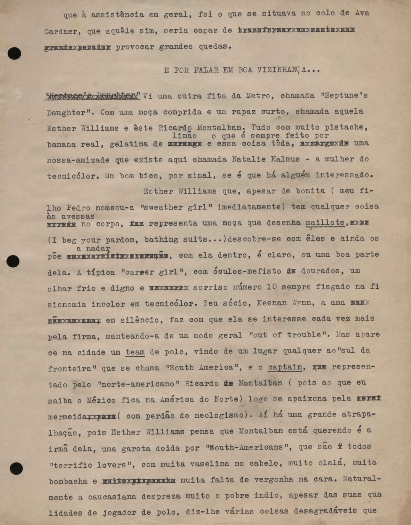 Crônica. Cópia carbonada. Trecho das crônicas "Libelo" e "Carta mortuária a Dolores Duran".