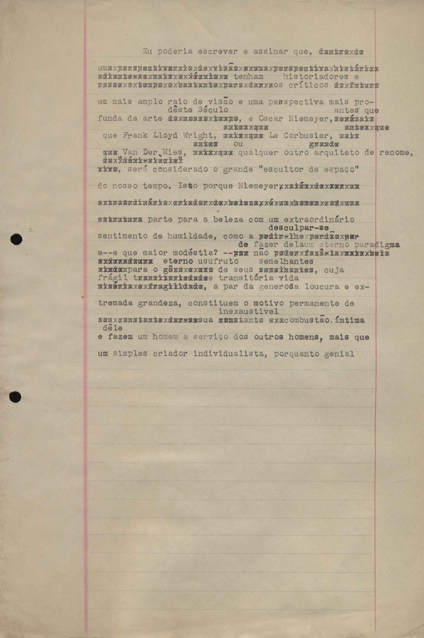 Crônica. Cópia carbonada. Trecho das crônicas "Libelo" e "Carta mortuária a Dolores Duran".