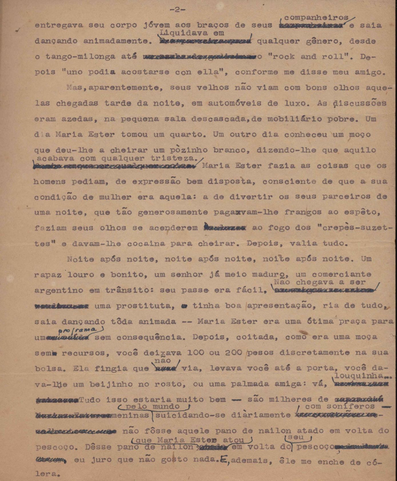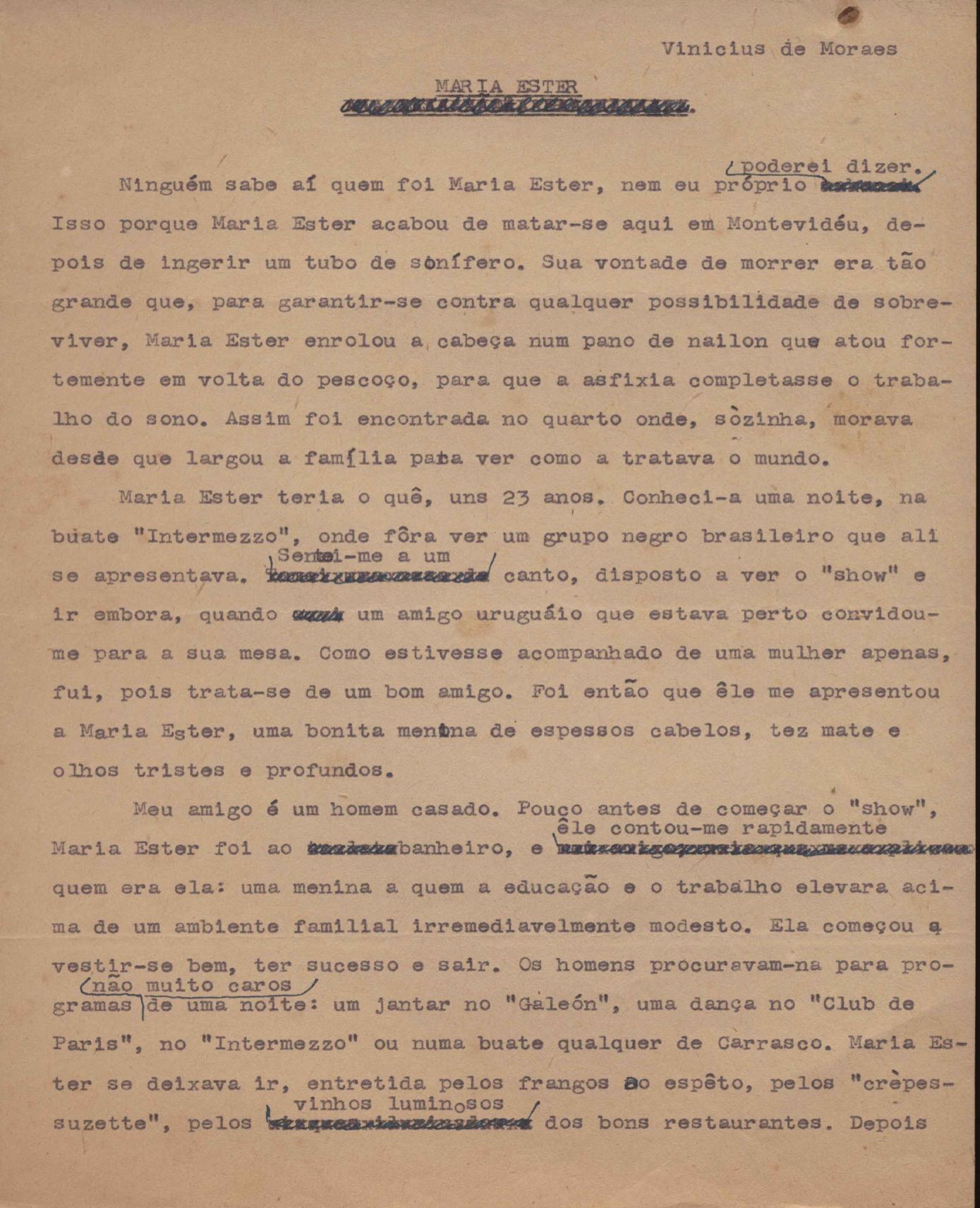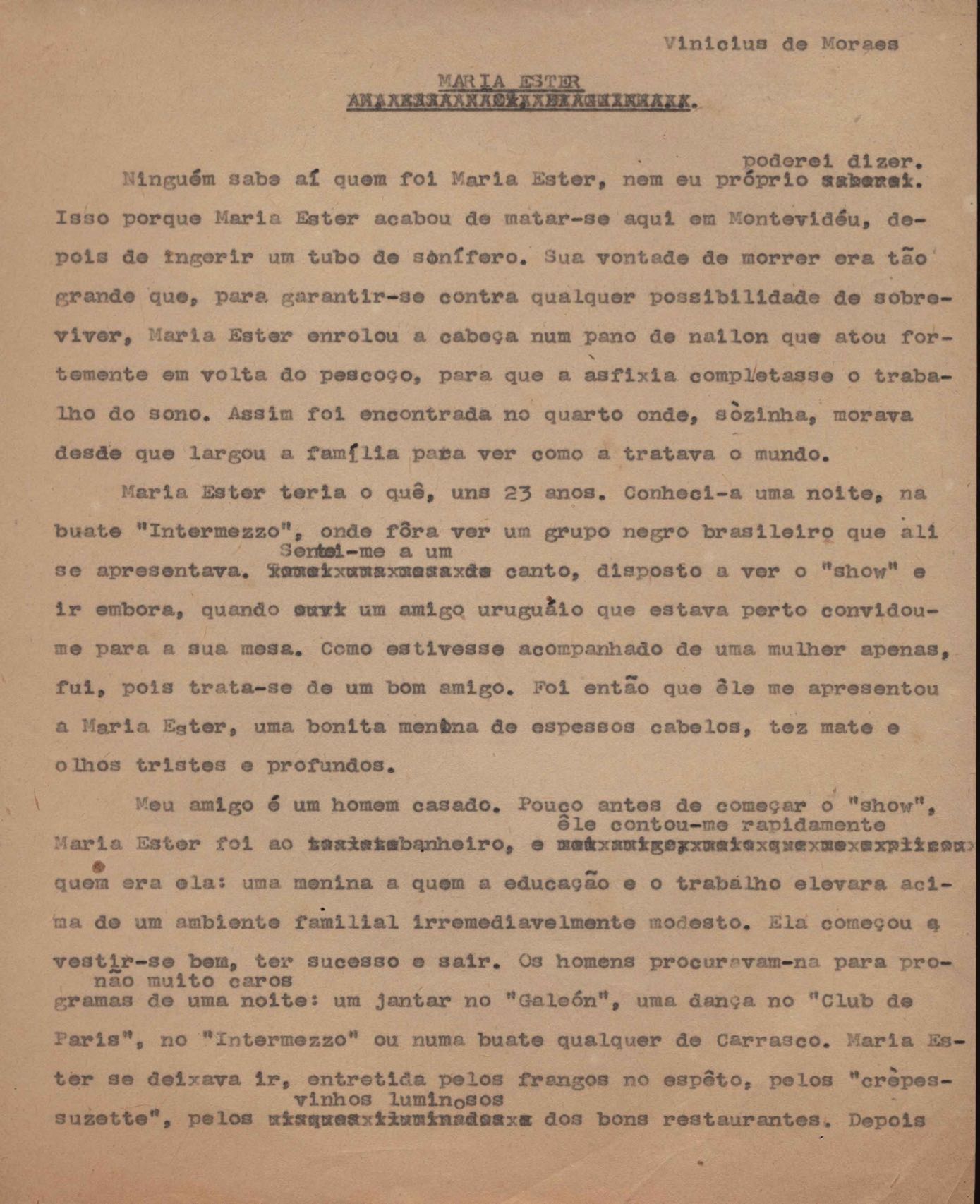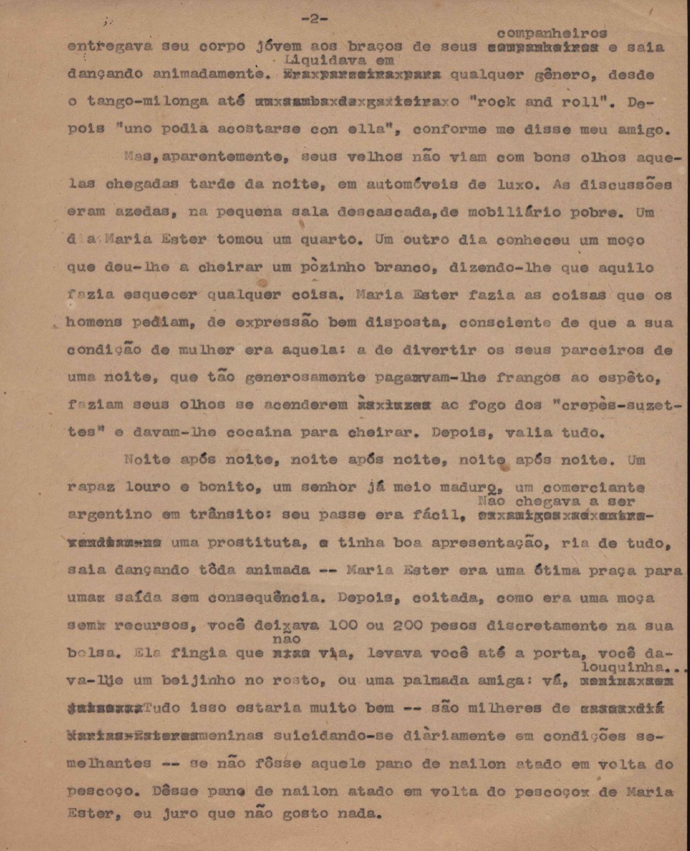 Crônica. Cópia carbonada. Trecho das crônicas "Libelo" e "Carta mortuária a Dolores Duran".