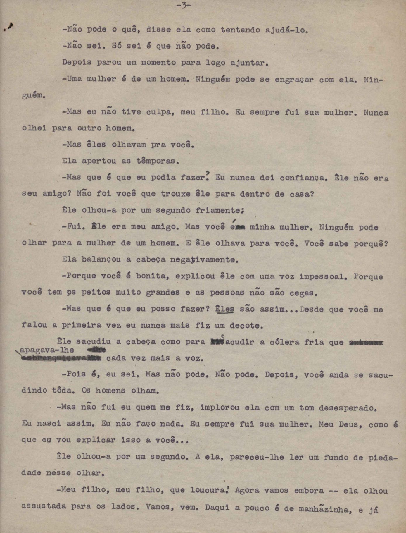 Crônica. Cópia carbonada. Trecho das crônicas "Libelo" e "Carta mortuária a Dolores Duran".