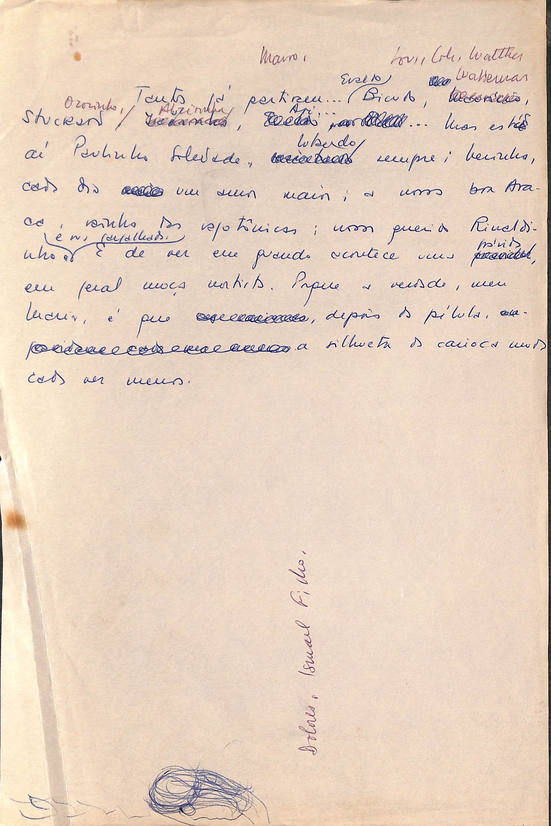 Crônica. Cópia carbonada. Trecho das crônicas "Libelo" e "Carta mortuária a Dolores Duran".