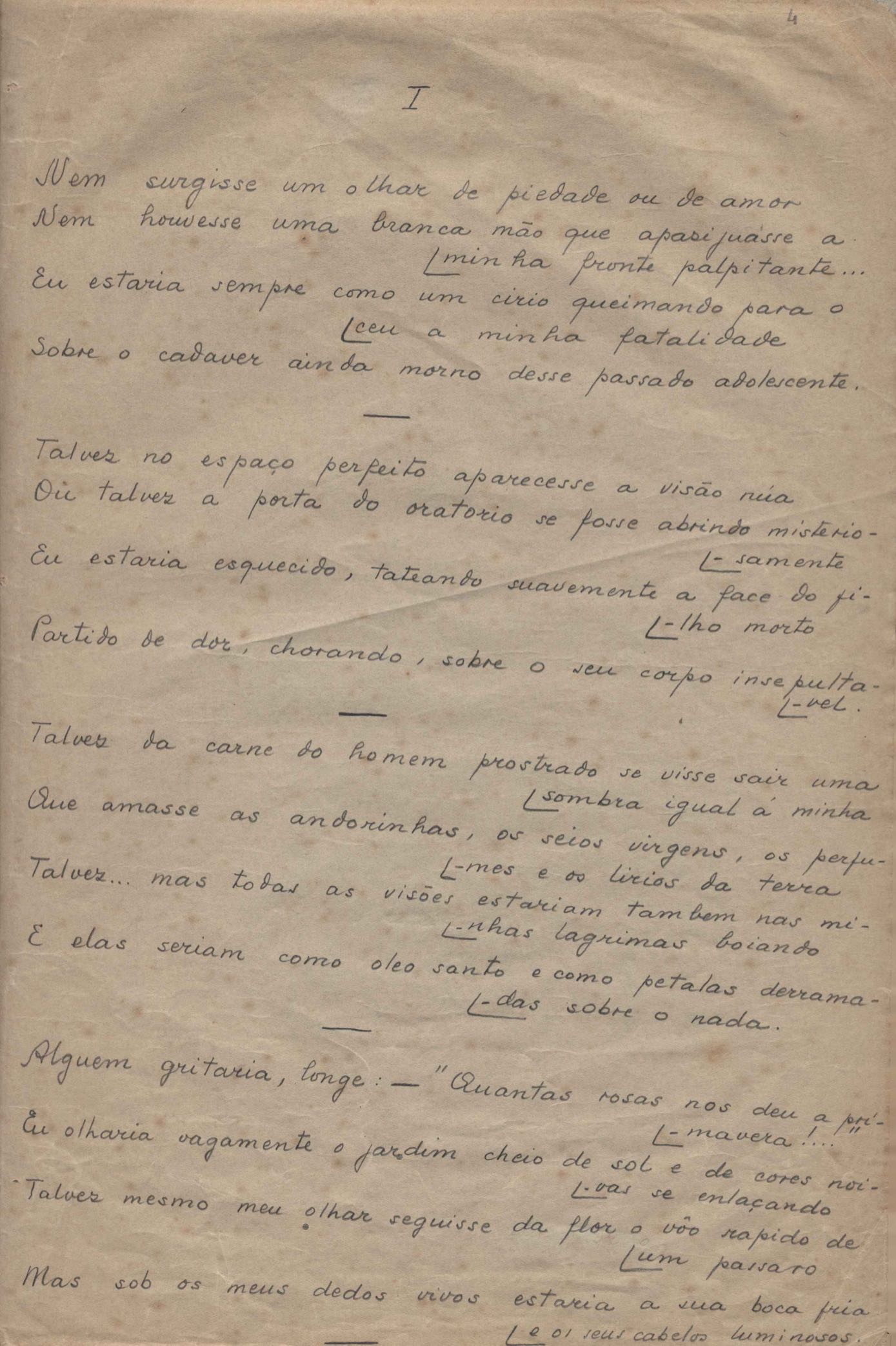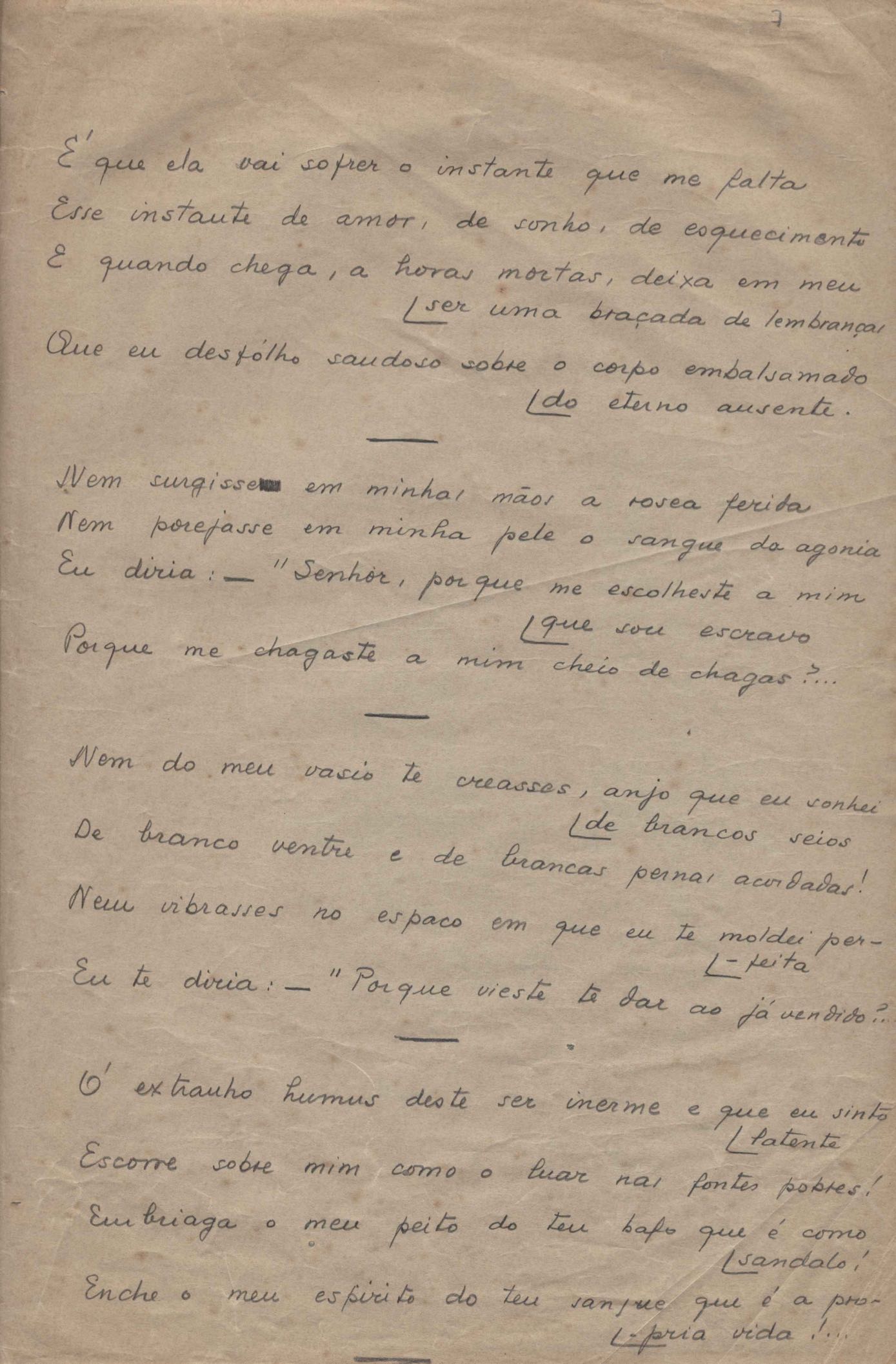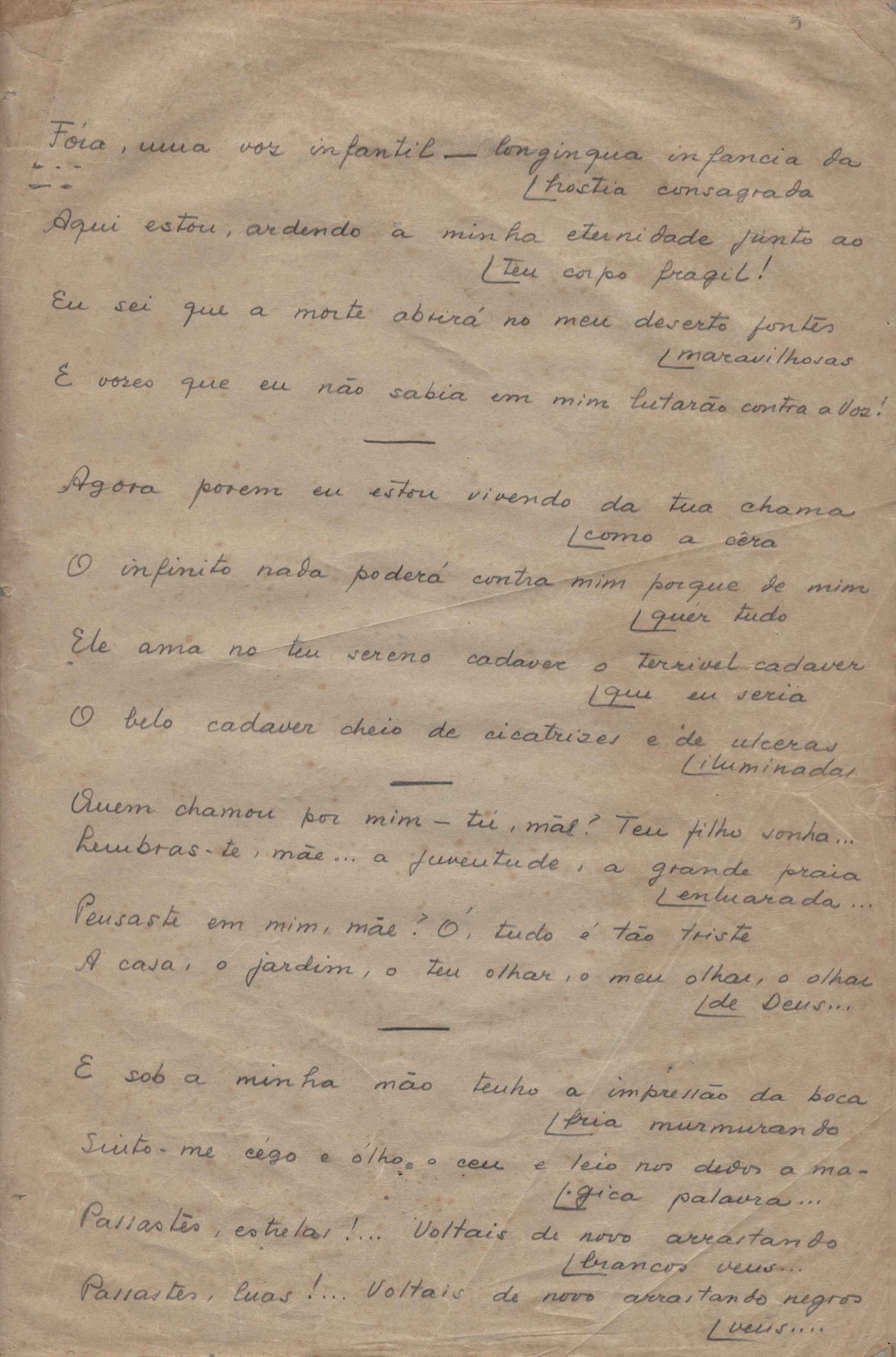 Poema. Há uma folha de rosto "O encontro de si mesmo" e uma epígrafe de Léon Bloy junto ao poema.