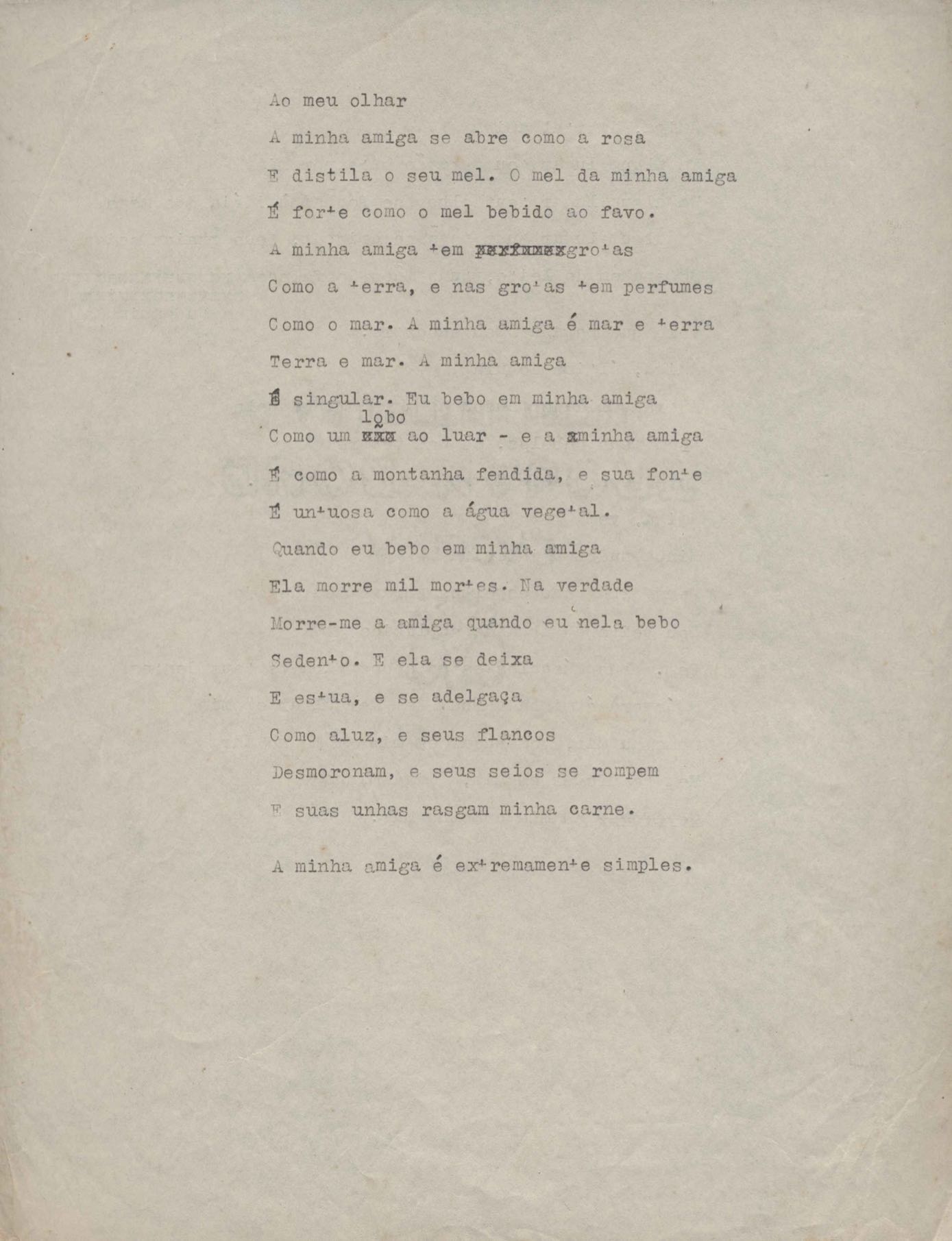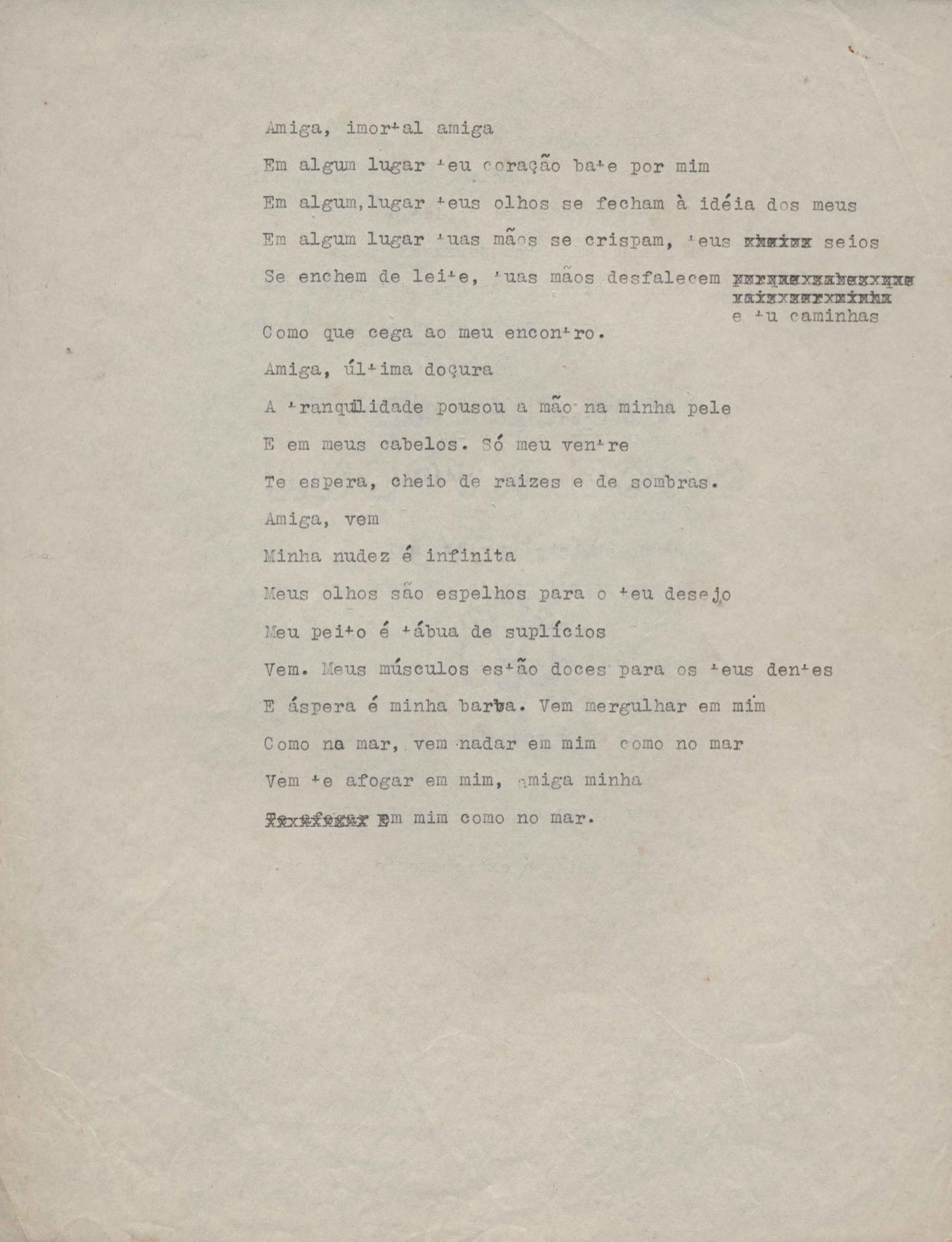 Poema. Há cópia carbonada. Rascunho.