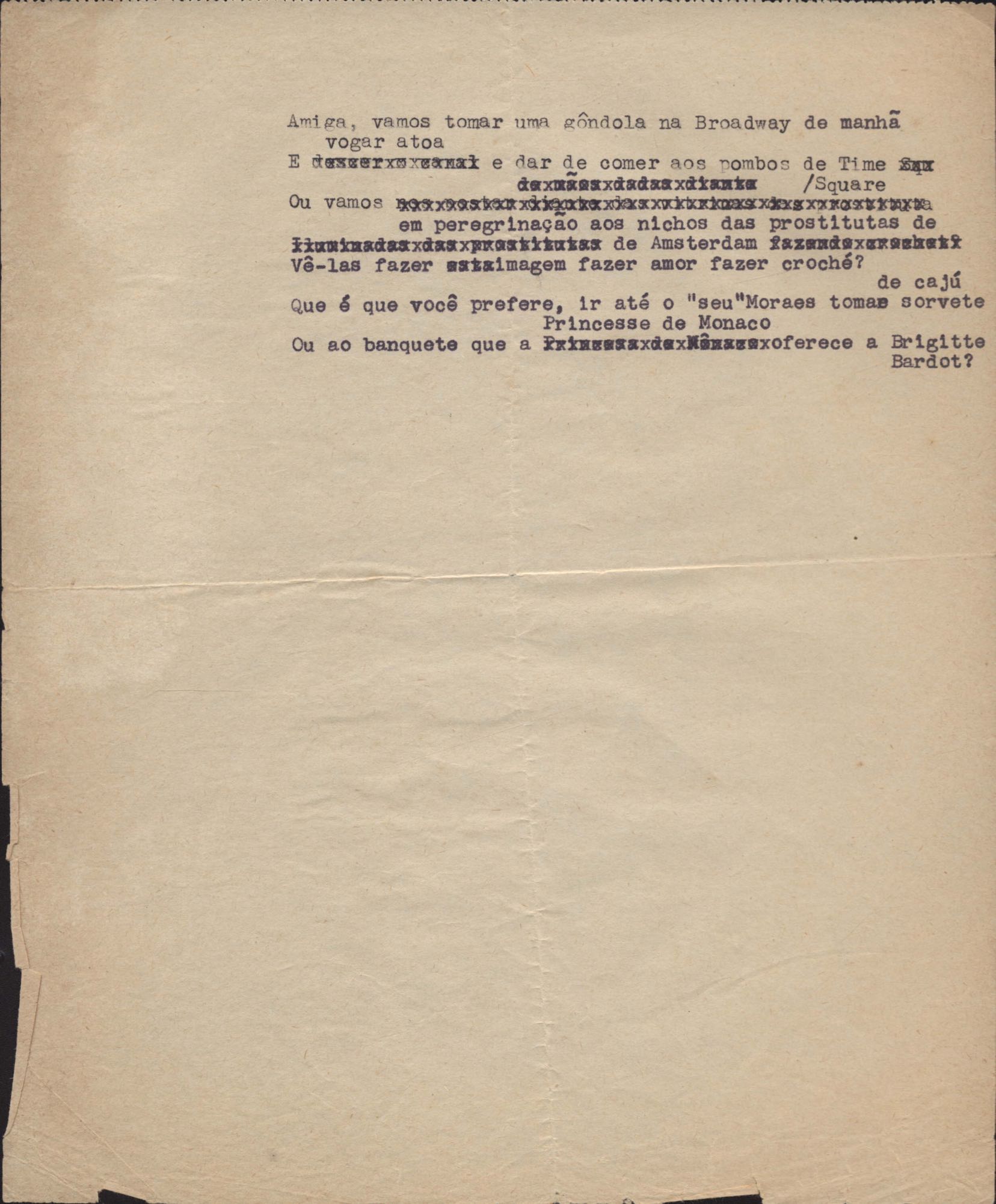 "Amiga, vamos tomar uma gôndola na Broadway de manhã"