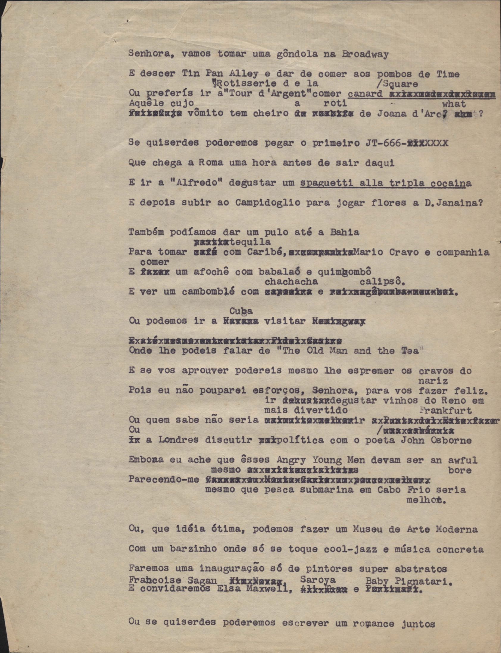 Poema. Há, no dossiê, vários rascunhos e poemas esparsos e inéditos. Alguns poemas do dossiê são encontrados também na primeira leva de documentos doados, e que faz parte do primeiro inventário. Na mesma página do poema "Quisera tanto" há o poema "Namorada". Há nota nos poemas: "Cada vez que eu penso nela", "O dia de Oxalá", "Menina, não banha nua" e "A morte sem pedágio".