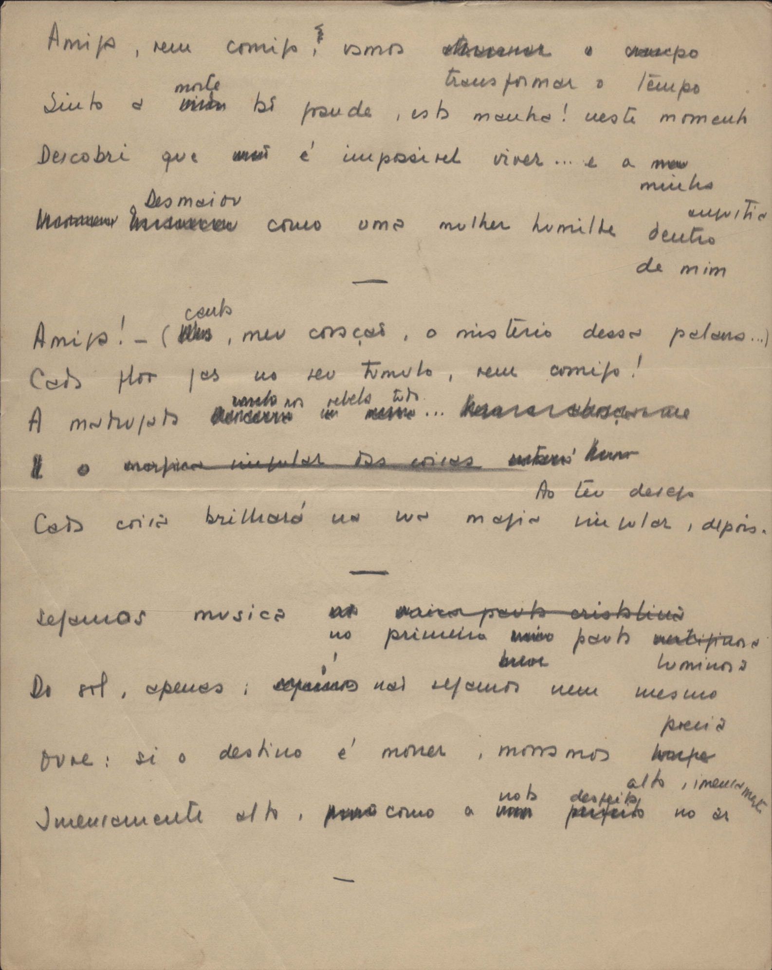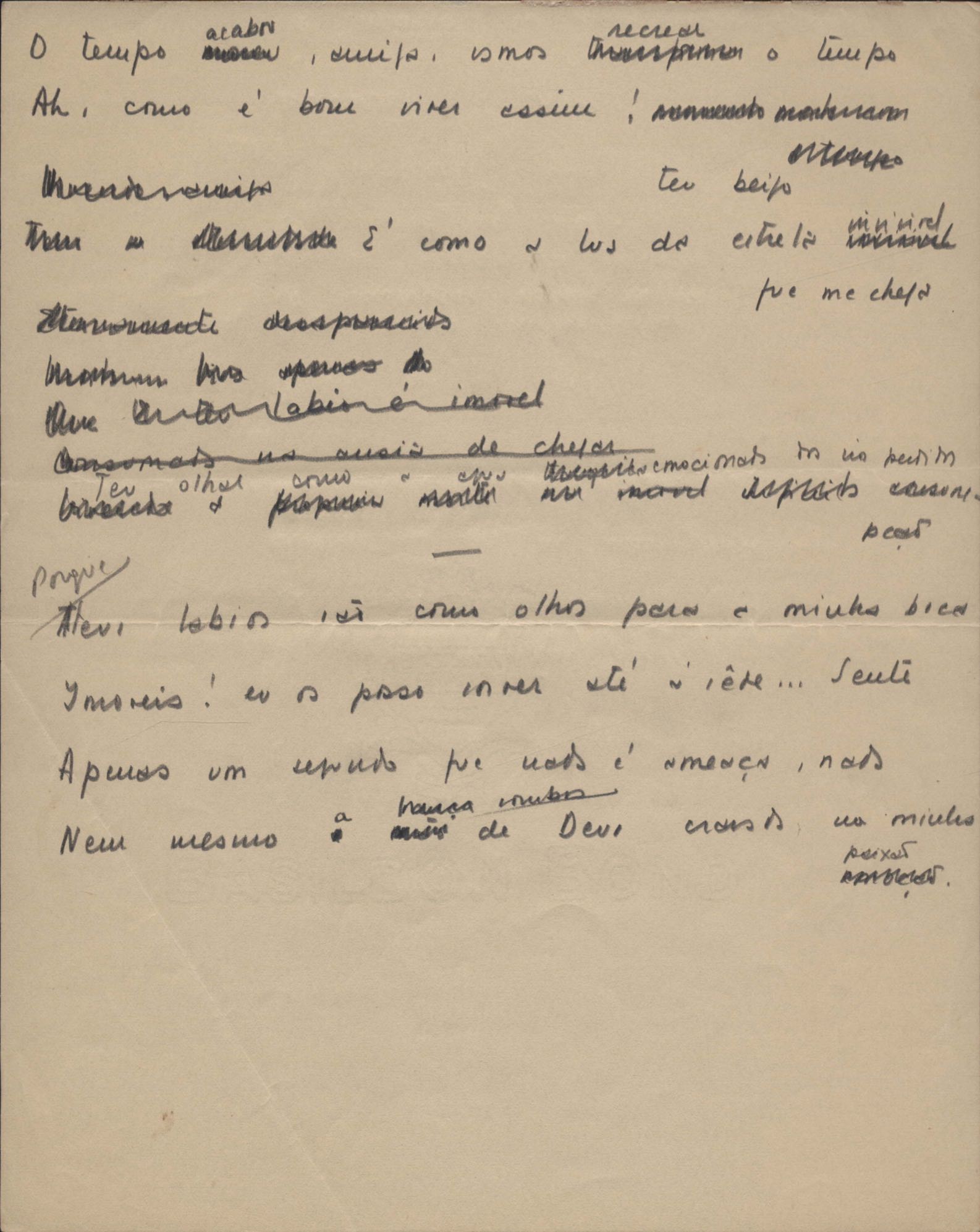Poema. Há, no dossiê, vários rascunhos e poemas esparsos e inéditos. Alguns poemas do dossiê são encontrados também na primeira leva de documentos doados, e que faz parte do primeiro inventário. Na mesma página do poema "Quisera tanto" há o poema "Namorada". Há nota nos poemas: "Cada vez que eu penso nela", "O dia de Oxalá", "Menina, não banha nua" e "A morte sem pedágio".