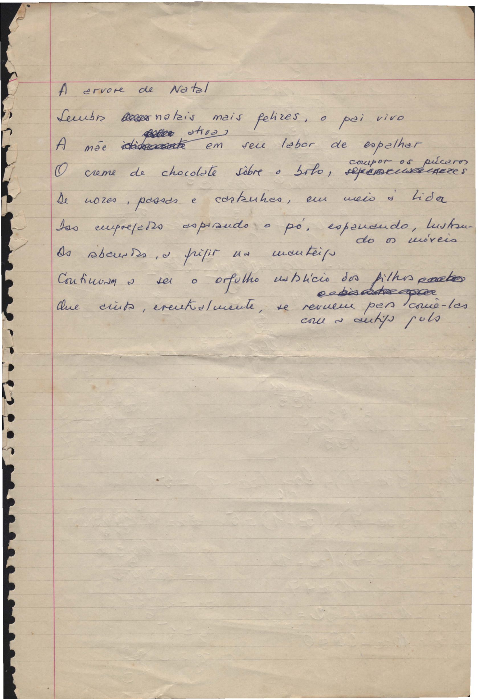 Poema. Há, no dossiê, vários rascunhos e poemas esparsos e inéditos. Alguns poemas do dossiê são encontrados também na primeira leva de documentos doados, e que faz parte do primeiro inventário. Na mesma página do poema "Quisera tanto" há o poema "Namorada". Há nota nos poemas: "Cada vez que eu penso nela", "O dia de Oxalá", "Menina, não banha nua" e "A morte sem pedágio".