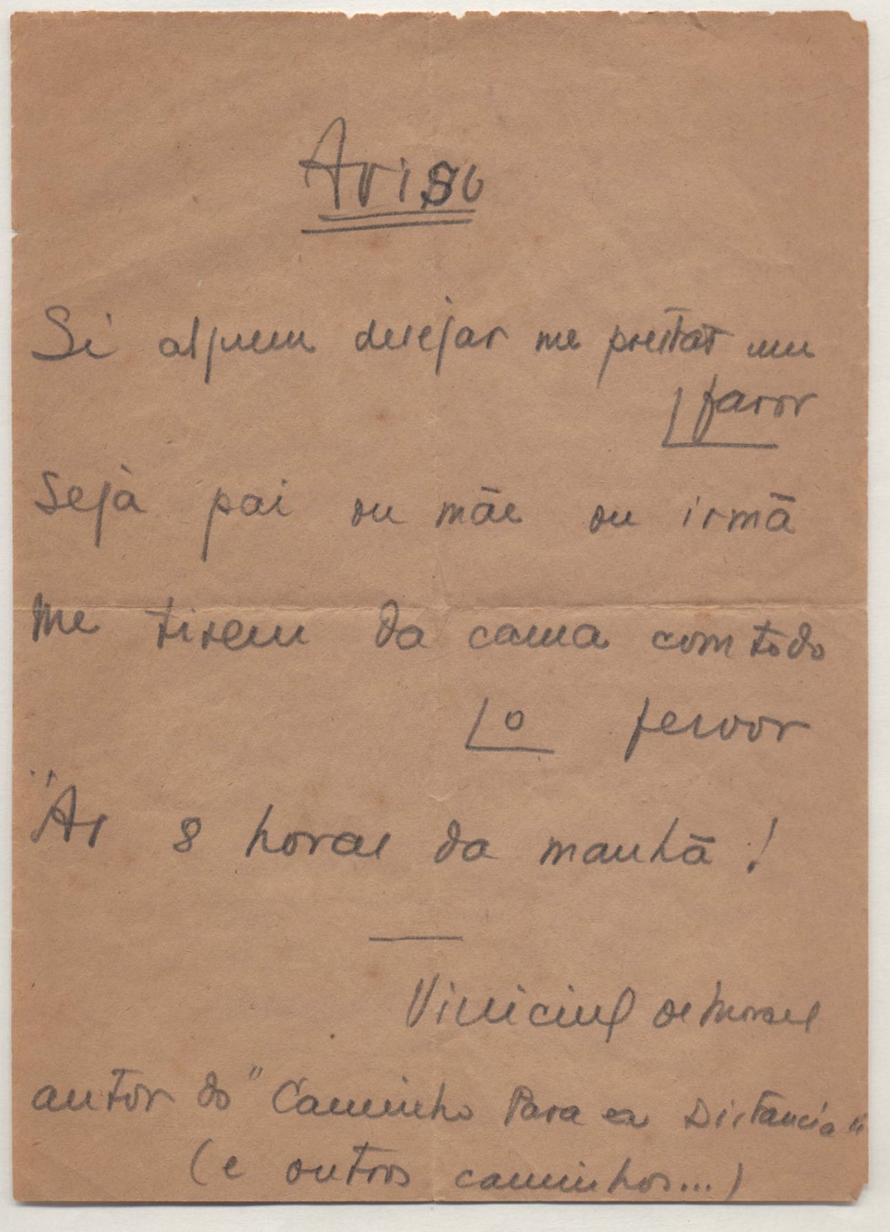Poema. Há, no dossiê, vários rascunhos e poemas esparsos e inéditos. Alguns poemas do dossiê são encontrados também na primeira leva de documentos doados, e que faz parte do primeiro inventário. Na mesma página do poema "Quisera tanto" há o poema "Namorada". Há nota nos poemas: "Cada vez que eu penso nela", "O dia de Oxalá", "Menina, não banha nua" e "A morte sem pedágio".