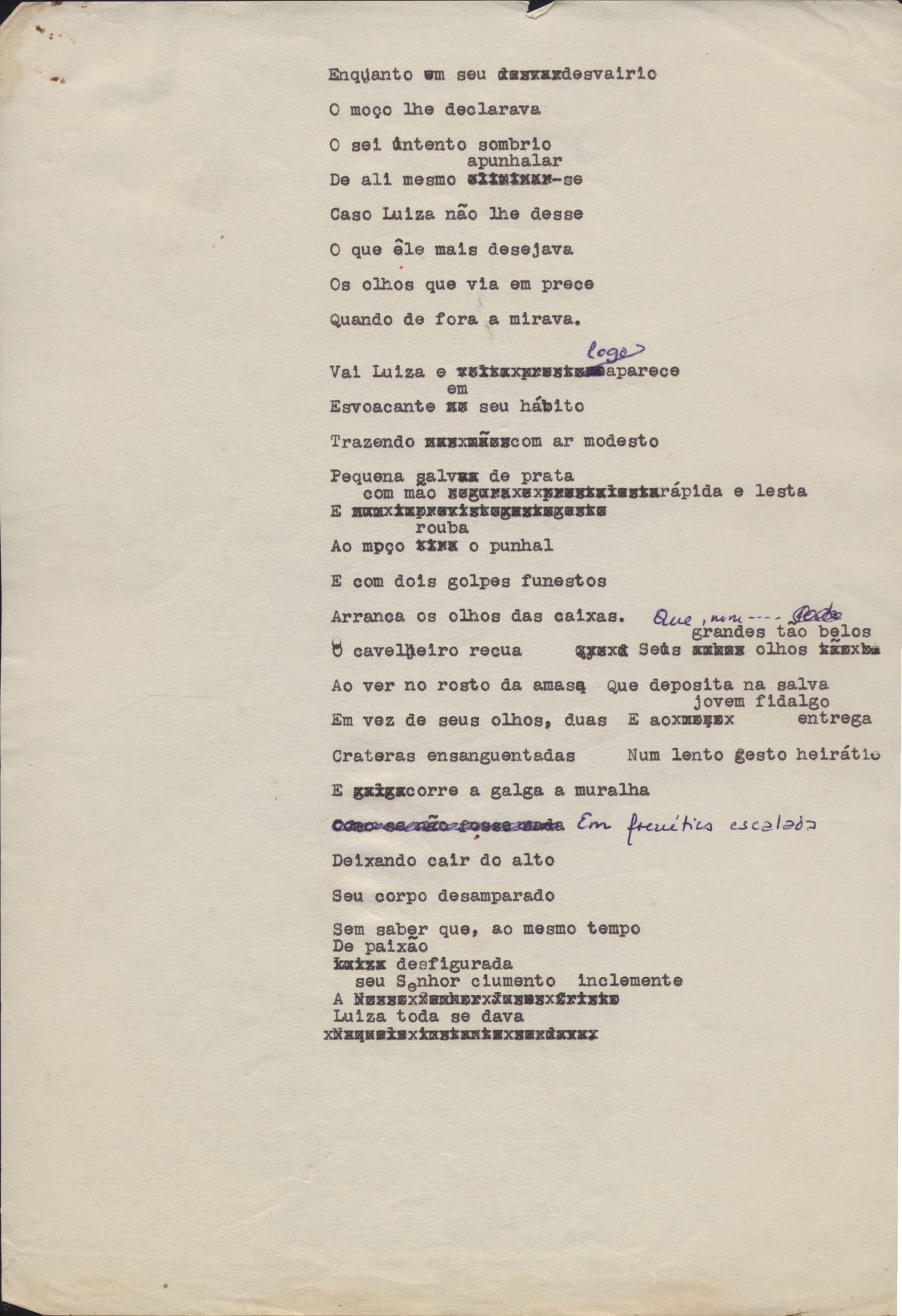 Poema. Há, no dossiê, vários rascunhos e poemas esparsos e inéditos. Alguns poemas do dossiê são encontrados também na primeira leva de documentos doados, e que faz parte do primeiro inventário. Na mesma página do poema "Quisera tanto" há o poema "Namorada". Há nota nos poemas: "Cada vez que eu penso nela", "O dia de Oxalá", "Menina, não banha nua" e "A morte sem pedágio".